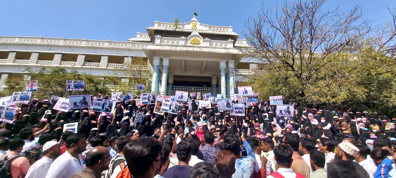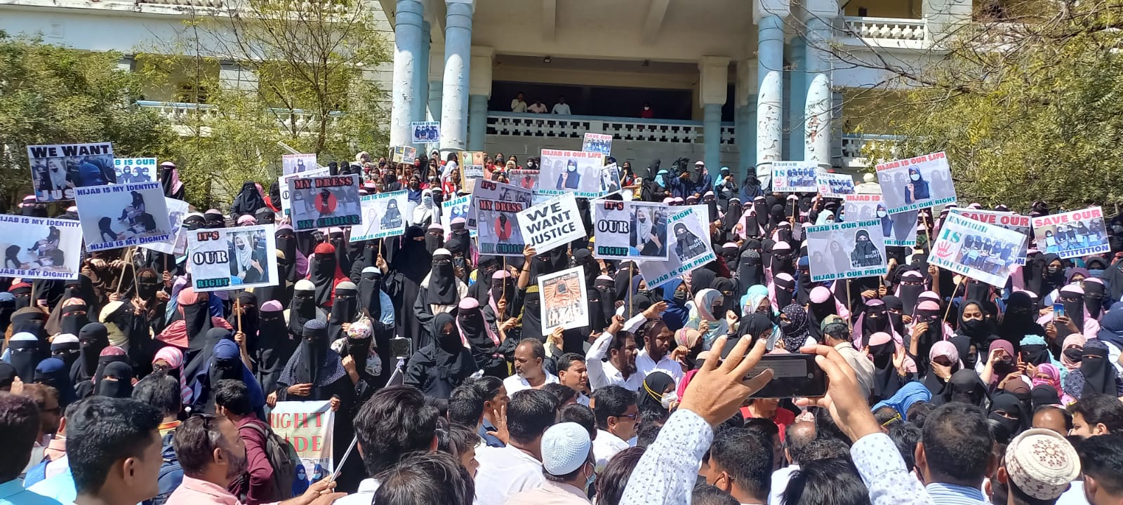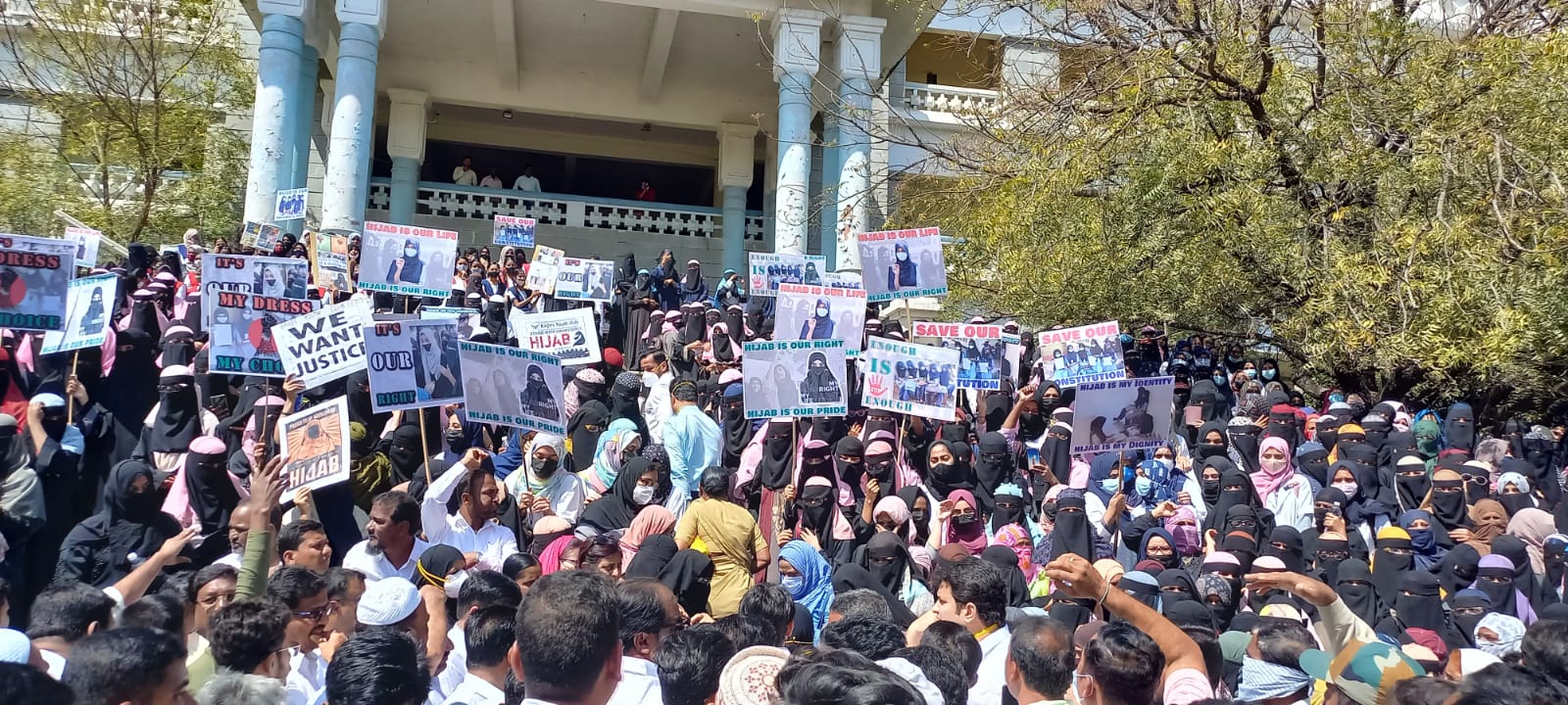 'ಹಿಜಾಬ್ ನಮ್ಮ ಹಕ್ಕು' ಎಂದು ಘೋಷಣೆ ಕೂಗಿದ ನೂರಾರು ವಿದ್ಯಾರ್ಥಿನಿಯರು