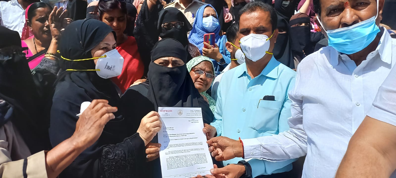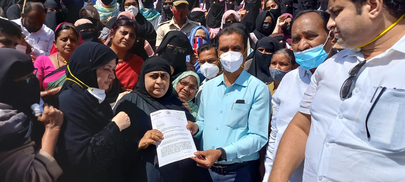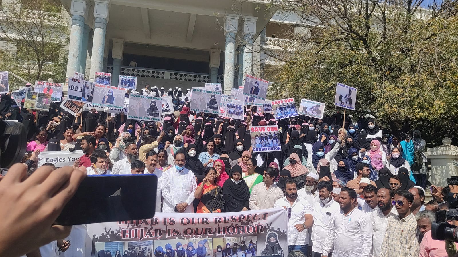 'ಹಿಜಾಬ್ ನಮ್ಮ ಹಕ್ಕು' ಎಂದು ಘೋಷಣೆ ಕೂಗಿದ ನೂರಾರು ವಿದ್ಯಾರ್ಥಿನಿಯರು