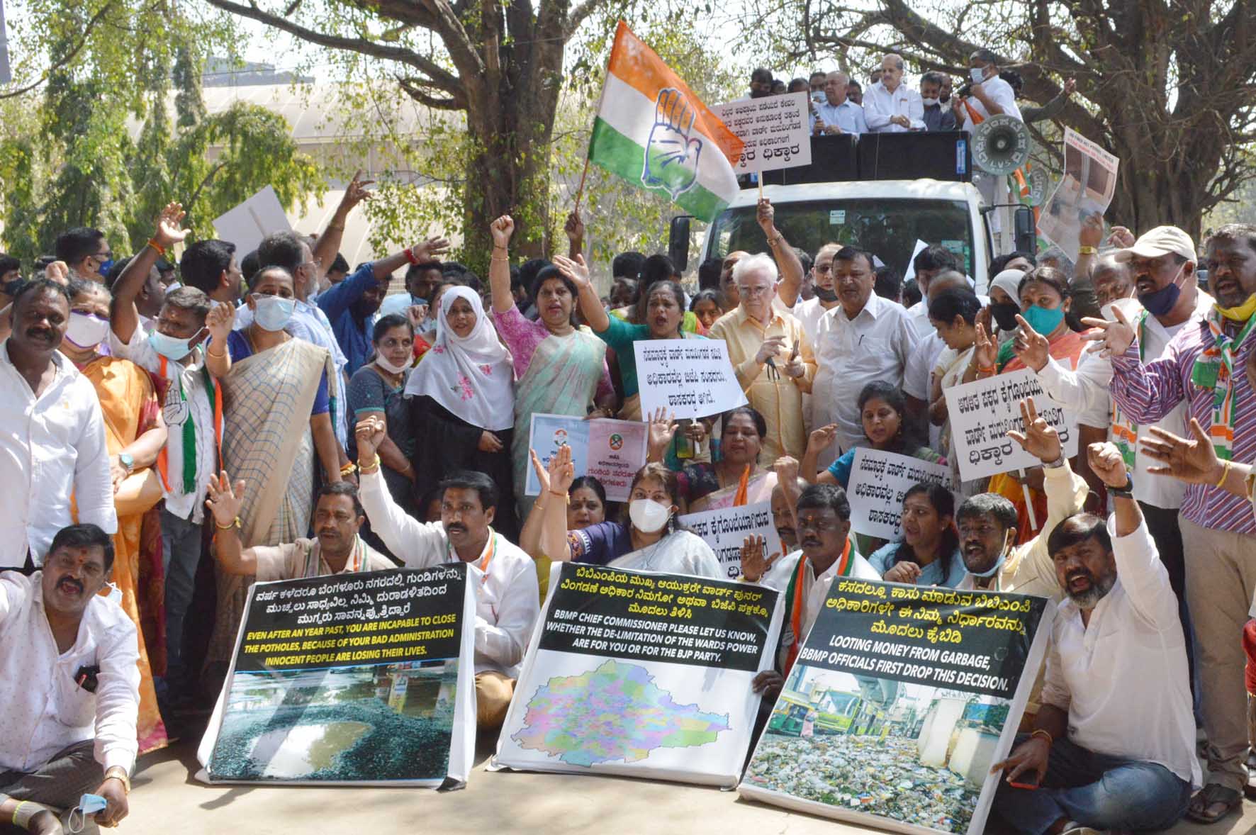 ಬಿಬಿಎಂಪಿ ಕೇಂದ್ರ ಕಚೇರಿ ಎದುರು ಕಾಂಗ್ರೆಸ್ ಪ್ರತಿಭಟನೆ