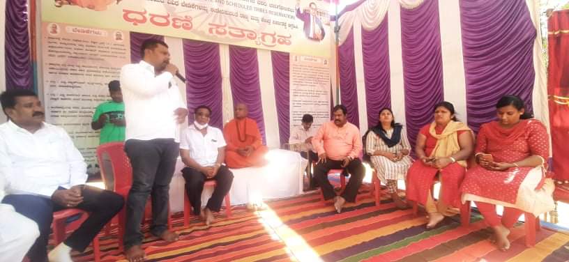 ಗುರುವಾರ ಇಲ್ಲಿನ ಫ್ರೀಡಂ ಪಾರ್ಕ್ ನಲ್ಲಿ ವಾಲ್ಮೀಕಿ ಶ್ರೀಗಳು ಆರಂಭಿಸಿರುವ ಸತ್ಯಾಗ್ರಹಕ್ಕೆ ಬೆಂಬಲ ಸೂಚಿಸಿ ಮಾತನಾಡಿದ ಅವರು, 'ಪರಿಶಿಷ್ಟ ಪಂಗಡ ಸಮುದಾಯಕ್ಕೆ ಶೇ.7.5 ಮೀಸಲಾತಿ ಜಾರಿಗೊಳಿಸುವ ಕುರಿತು ನ್ಯಾ. ನಾಗಮೋಹನ್ ದಾಸ್ ವರದಿ ಅನುಷ್ಠಾನಗೊಳಿಸಬೇಕು ಎಂದರು.