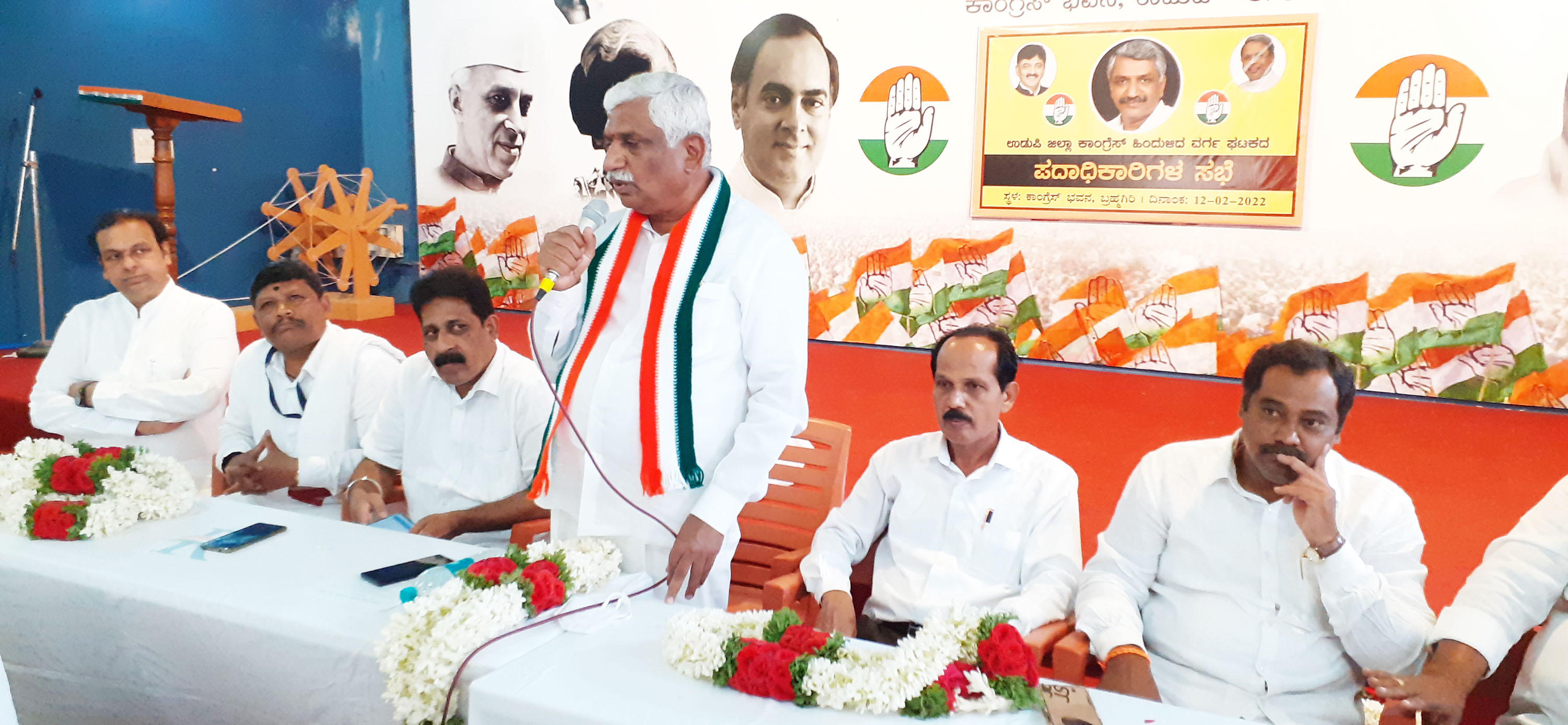 ಬ್ರಹ್ಮಗಿರಿಯಲ್ಲಿರುವ ಜಿಲ್ಲಾ ಕಾಂಗ್ರೆಸ್ ಭವನದಲ್ಲಿ ಶನಿವಾರ ನಡೆದ ಉಡುಪಿ ಜಿಲ್ಲಾ ಕಾಂಗ್ರೆಸ್ ಹಿಂದುಳಿದ ವರ್ಗಗಳ ಘಟಕದ ಪದಾಧಿಕಾರಿಗಳ ಸಭೆಯನ್ನು ಉದ್ಘಾಟಿಸಿ ಅವರು ಮಾತನಾಡುತಿದ್ದರು. ಬಿಜೆಪಿ ಜಿಪಂ ಚುನಾವಣೆಯಲ್ಲಿ ಹಿಂದುಳಿದ ವರ್ಗಗಳಿಗೆ 129 ಸ್ಥಾನಗಳಲ್ಲಿ ಅನ್ಯಾಯ ಮಾಡಿದಾಗ ನಾವದನ್ನು ಸೂಕ್ತ ರೀತಿಯಲ್ಲಿ ಪ್ರಶ್ನಿಸಿದ್ದೇವೆ. ಇದರಿಂದ ರಾಜ್ಯದ ತಾಪಂ ಹಾಗೂ ಜಿಪಂಗಳಿಗೆ ಚುನಾವಣೆ ನಡೆಯಲು ಸಾಧ್ಯವಾಗಿಲ್ಲ ಎಂದರು.
