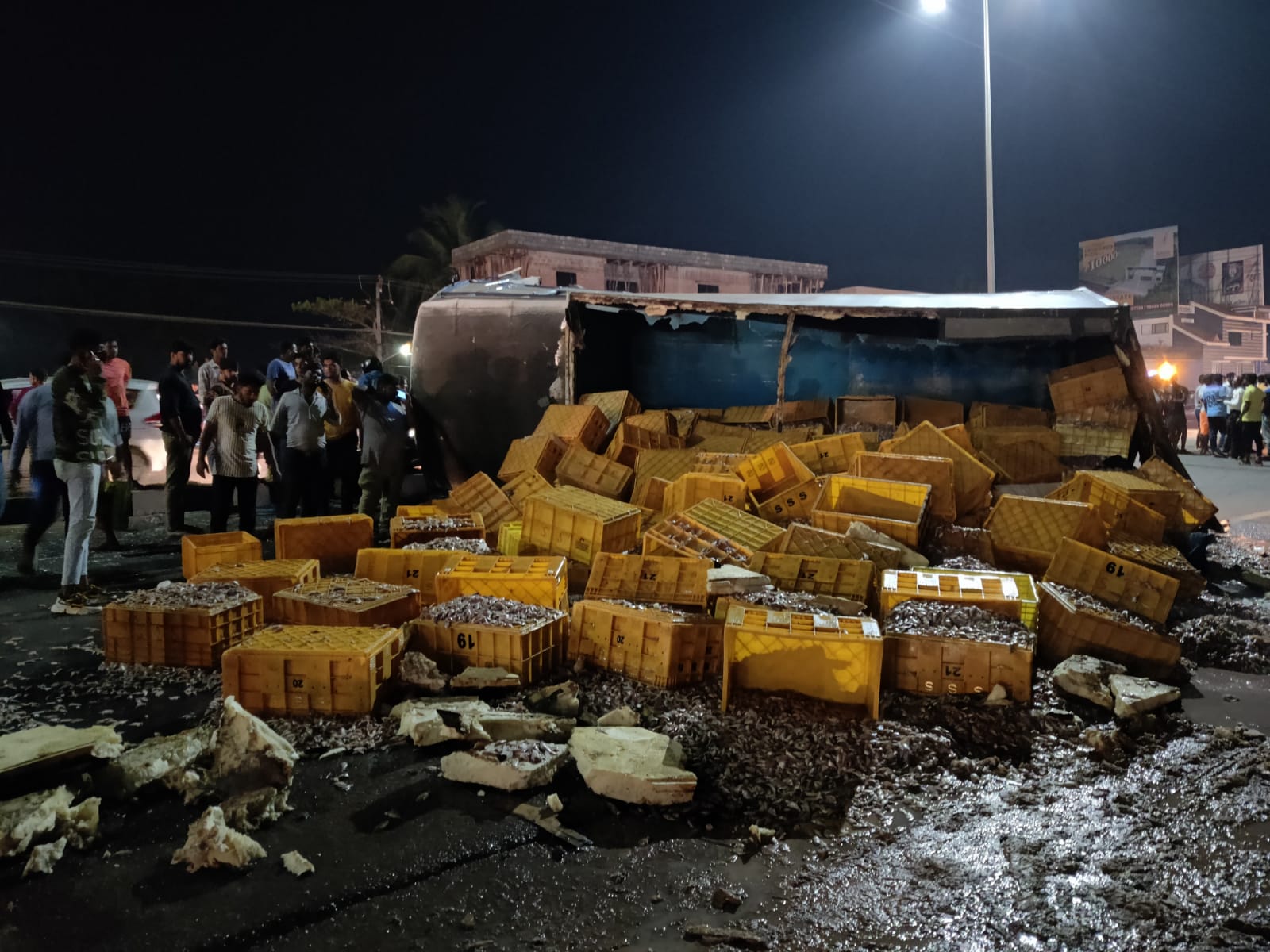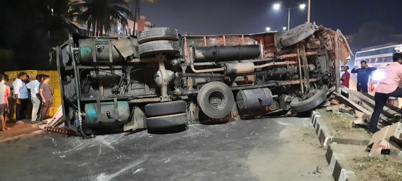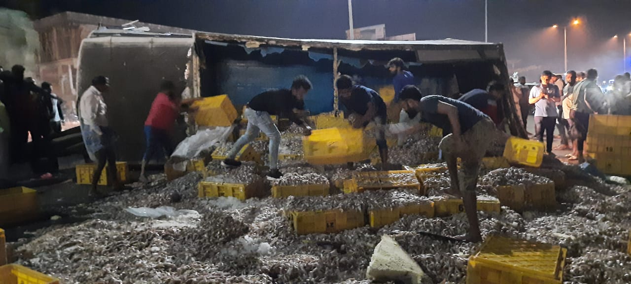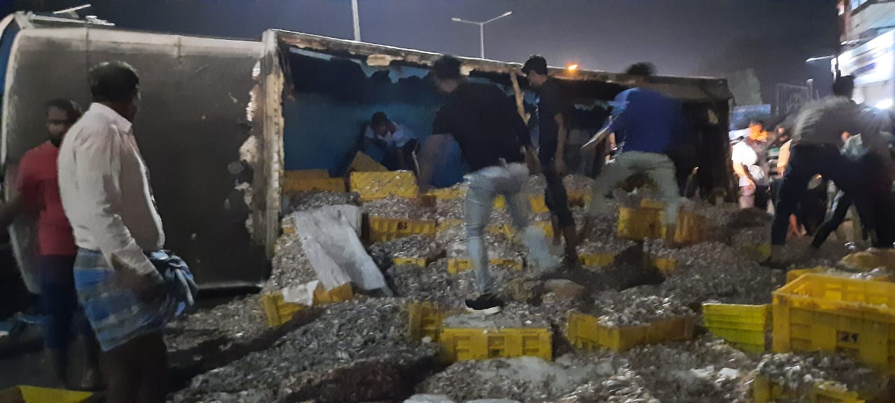 ಮುಕ್ಕ: ಮೀನು ಸಾಗಾಟದ ಲಾರಿ ಪಲ್ಟಿ; ಸಂಚಾರ ಅಸ್ತವ್ಯಸ್ತ