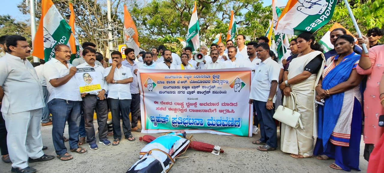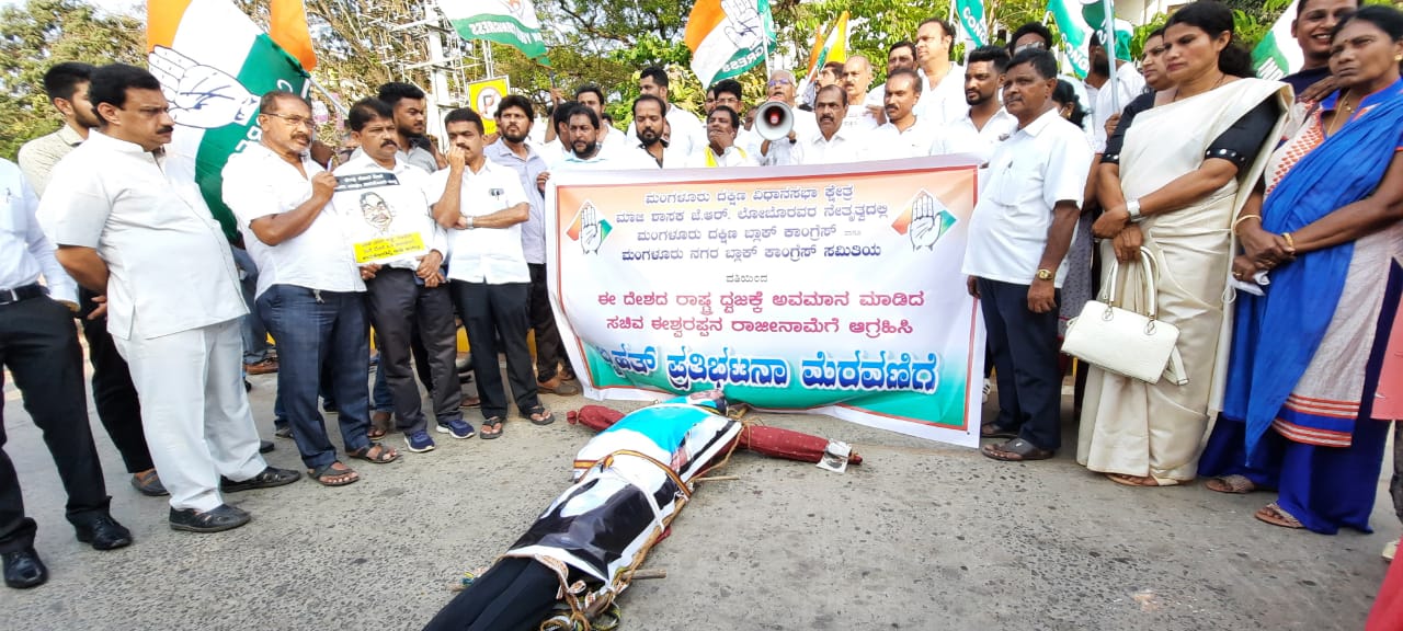 ಮಂಗಳೂರು: ಸಚಿವ ಈಶ್ವರಪ್ಪ ರಾಜೀನಾಮೆಗೆ ಆಗ್ರಹಿಸಿ ಕಾಂಗ್ರೆಸ್ ಪ್ರತಿಭಟನೆ