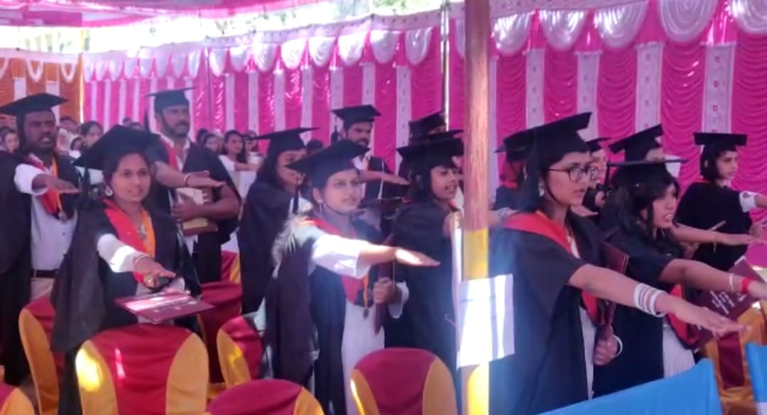 ಇಂದು ನಡೆದ ಒಂದನೇ ಪದವಿ ಪ್ರದಾನ ಸಮಾರಂಭದಲ್ಲಿ ವಿದ್ಯಾರ್ಥಿನಿಯರು ಹಿಜಾಬ್ ಧರಿಸಿ ಪದವಿ ಹಾಗೂ ಗೋಲ್ಡ್ ಮೆಡಲ್ ಸ್ವೀಕರಿಸಿದ್ದಾರೆ.