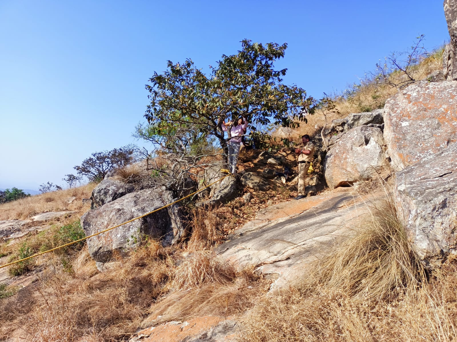 ಬಳಿಕ ಸಹಾಯಕ್ಕಾಗಿ ಸರ್ಕಾರದ ಕಂಟ್ರೋಲ್ ರೂಂ ಗೆ ಕರೆ ಮಾಡಿ ವಿಷಯ ತಿಳಿಸಿದ್ದಾನೆ. ಸ್ಥಳಕ್ಕಾಗಮಿಸಿದ ಆಗ್ನಿಶಾಮಕದಳ ಸಿಬ್ಬಂದಿ ಕಡಿದಾದ ಪ್ರದೇಶ ದುರ್ಗಮ ಹಾದಿಯಲ್ಲಿ ಇರುವ ಬಗ್ಗೆ ಪತ್ತೆ ಹಚ್ಚಿದ್ದಾರೆ.