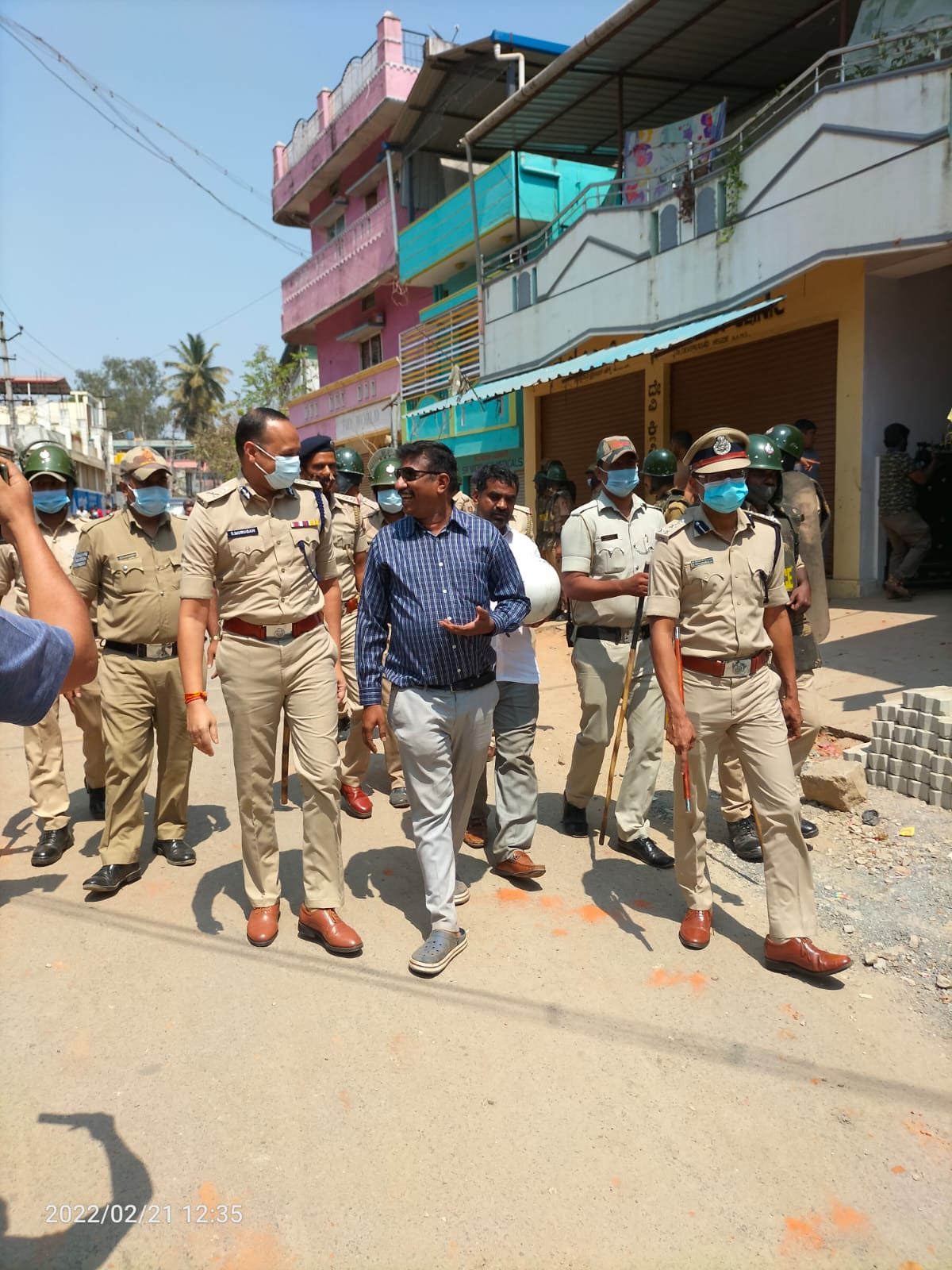 ಶಿವಮೊಗ್ಗ, ಫೆ.22: ಬಜರಂಗದಳದ ಕಾರ್ಯಕರ್ತ ಹರ್ಷ ಹತ್ಯೆ ಬಳಿಕ ಬೂದಿ ಮುಚ್ಚಿದ ಕೆಂಡವಾಗಿರುವ ಶಿವಮೊಗ್ಗ ಸಹಜಸ್ಥಿತಿಗೆ ಬರುತ್ತಿದೆ. ಈ ನಡುವೆ ಕಳೆದ ರಾತ್ರಿ ಉದ್ರಿಕ್ತರಿಂದ ನಗರದ ಹಲವೆಡೆ ಕಲ್ಲು ತೂರಾಟ, ದ್ವಿಚಕ್ರಗಳಿಗೆ ಹಾನಿಯಾದಂತಹ ಘಟನೆಗಳು ನಡೆದಿವೆ. ಈ ಹಿನ್ನೆಲೆಯಲ್ಲಿ ನಗರದಲ್ಲಿ ಶಾಂತಿ ಸುವ್ಯವಸ್ಥೆ ಕಾಪಾಡುವ ಸಲುವಾಗಿ ನಗರದಾದ್ಯಂತ ಬಿಗಿ ಪೊಲೀಸ್ ಬಂದೋಬಸ್ತ್ ವ್ಯವಸ್ಥೆ ಮಾಡಲಾಗಿದೆ.