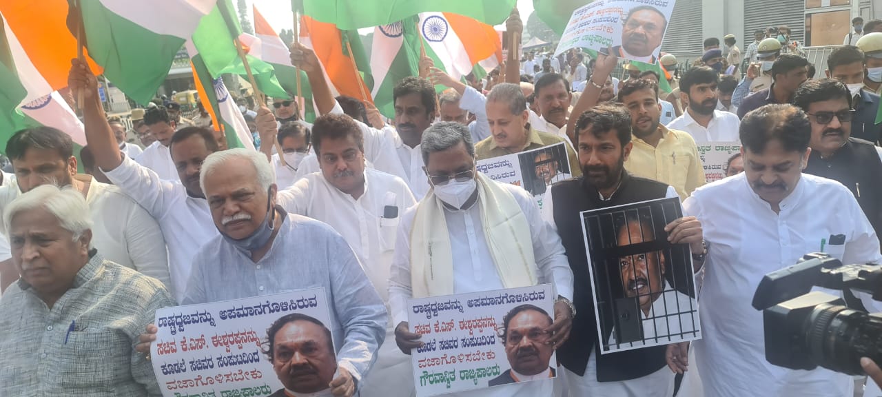 ಈಶ್ವರಪ್ಪರನ್ನು ಸಂಪುಟದಿಂದ ವಜಾಗೊಳಿಸುವಂತೆ ರಾಜ್ಯಪಾಲರಿಗೆ ಮನವಿ ಸಲ್ಲಿಸಲು ರಾಜಭವನಕ್ಕೆ ಕಾಂಗ್ರೆಸ್ ಪಾದಯಾತ್ರೆ
