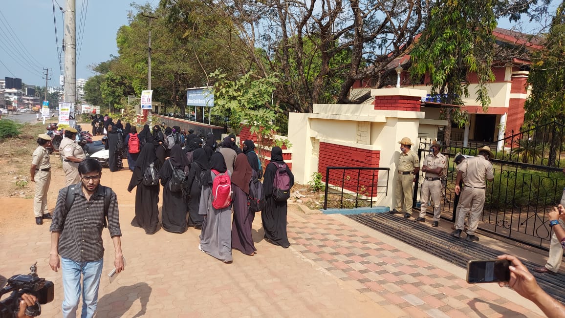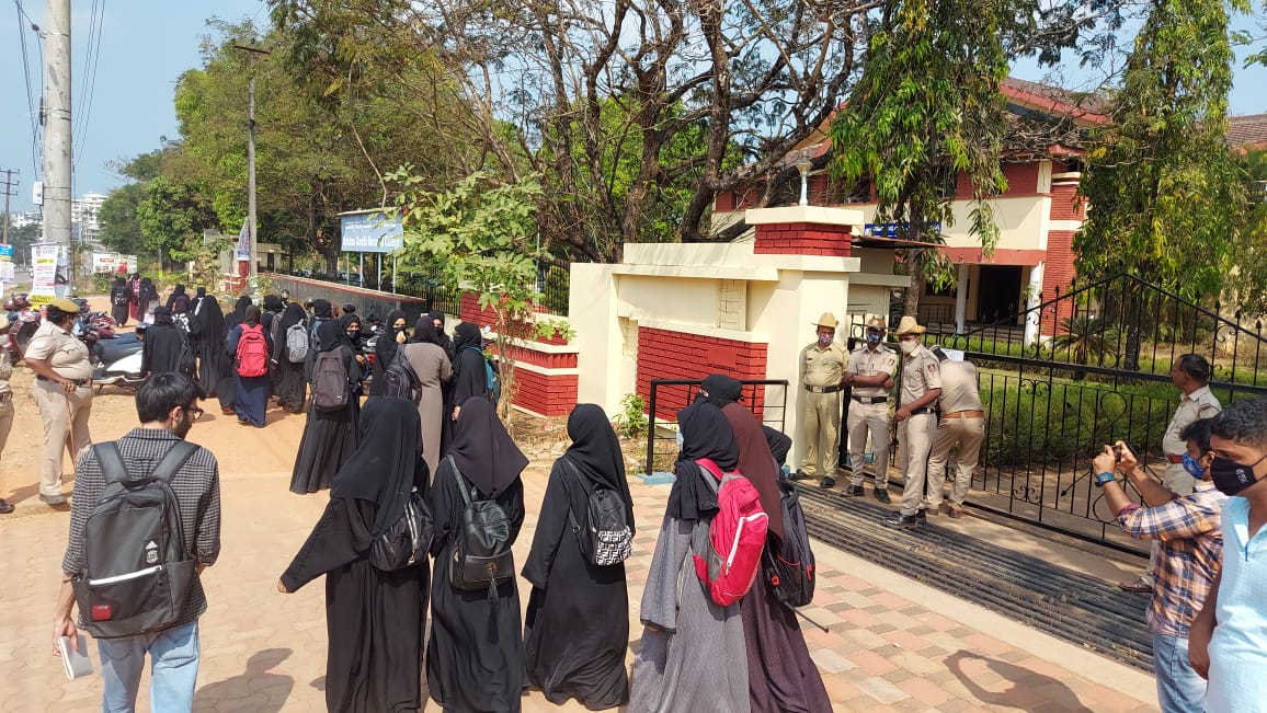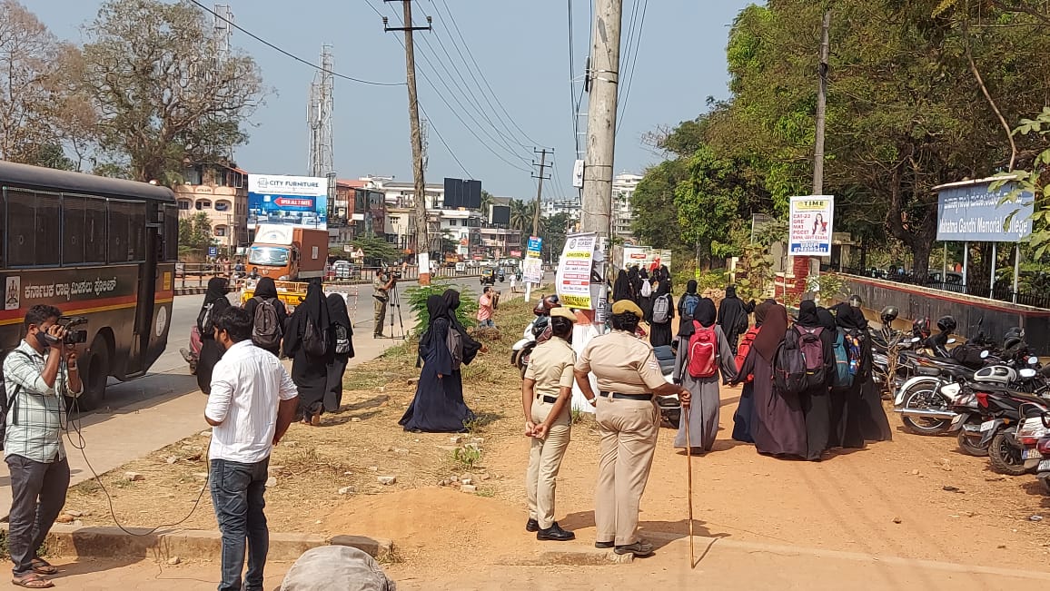 ಹಿಜಾಬ್ಧಾರಿ ವಿದ್ಯಾರ್ಥಿನಿಯರು ಕಾಲೇಜಿನ ಆವರಣದೊಳಗೆ ಪ್ರವೇಶಿಸ ದಂತೆ ಗೇಟು ಹಾಕಲಾಯಿತು. ಈ ಹಿನ್ನೆಲೆಯಲ್ಲಿ 30ಕ್ಕೂ ಅಧಿಕ ವಿದ್ಯಾರ್ಥಿನಿ ಯರು ಬುರ್ಕಾ ಹಾಕಿಕೊಂಡು ಗೇಟಿಗೆ ಎದುರು ನಿಂತು ಪ್ರವೇಶ ಕಲ್ಪಿಸುವಂತೆ ಒತ್ತಾಯಿಸಿದರು. ಕಾಲೇಜಿನಿಂದ ಯಾವುದೇ ಸ್ಪಂದನೆ ದೊರೆಯದ ಕಾರಣ ವಿದ್ಯಾರ್ಥಿನಿಯರು, ಬಳಿಕ ಮನೆಗೆ ವಾಪಾಸ್ಸಾದರು.