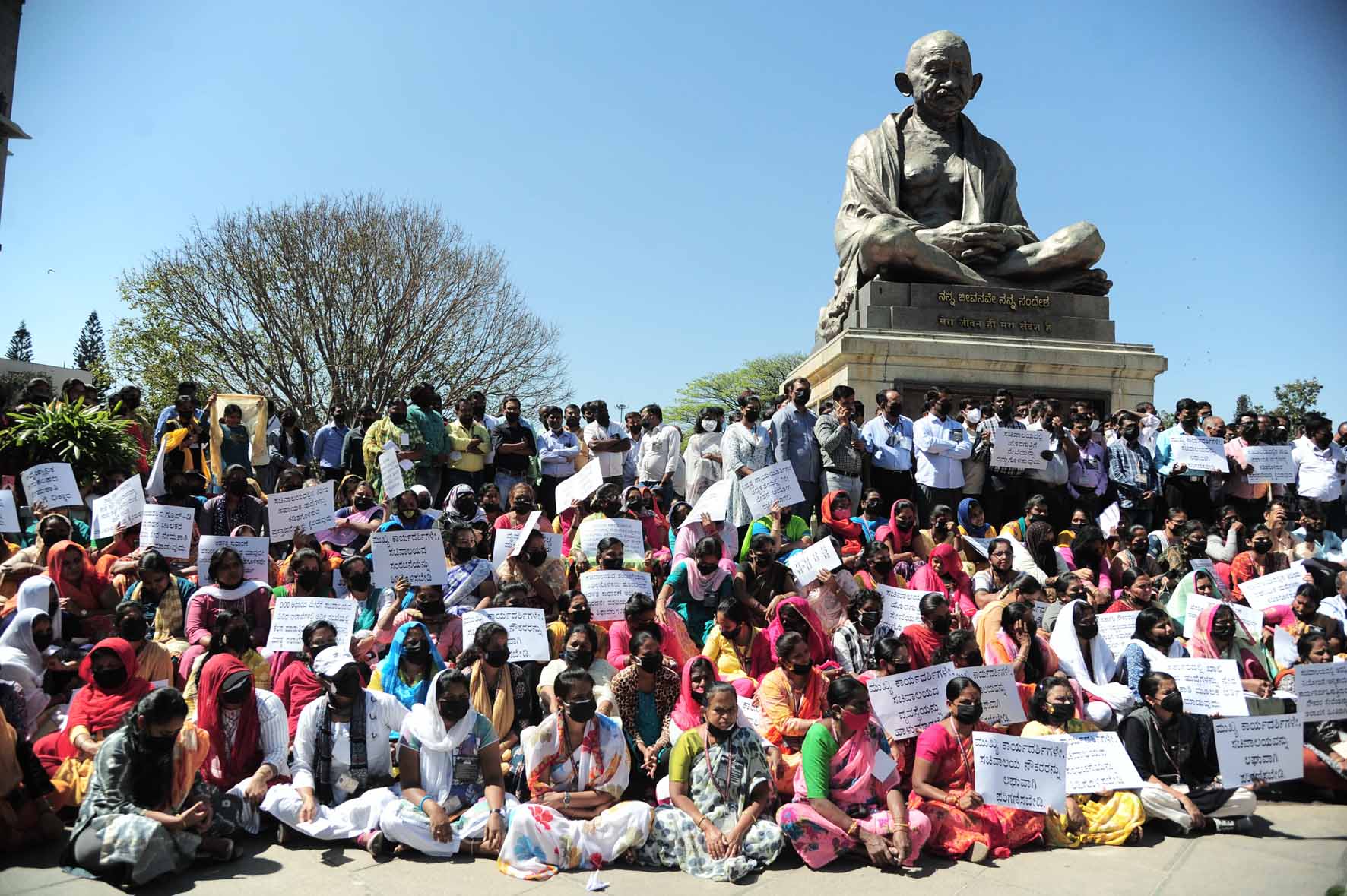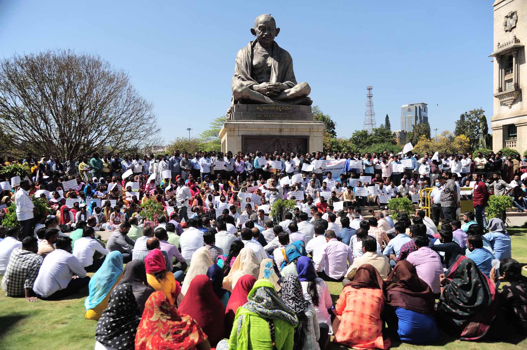 ಬೆಂಗಳೂರು: ಖಾಲಿ ಹುದ್ದೆಗಳ ಭರ್ತಿಗೆ ಆಗ್ರಹಿಸಿ ಸಚಿವಾಲಯದ ನೌಕರರ ಸಂಘ ಪ್ರತಿಭಟನೆ