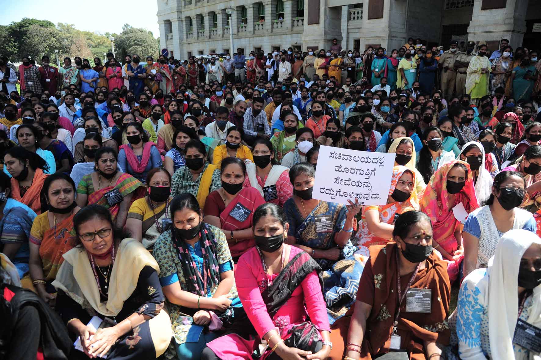 ಸಚಿವಾಲಯದ ಇಲಾಖೆಗಳಲ್ಲಿ ಗ್ರೂಪ್-ಡಿ, ದತ್ತಾಂಶ ನಮೂದಕರನ್ನೊಳಗೊಂಡಂತೆ ಸಿಬ್ಬಂದಿ ಮತ್ತು ಆಡಳಿತ ಸುಧಾರಣೆ ಇಲಾಖೆಯಿಂದ ಭರ್ತಿ ಮಾಡಿದ ಅಧಿಕಾರಿ, ನೌಕರರನ್ನು ಹೊರತುಪಡಿಸಿ ಕ್ಷೇತ್ರ ಇಲಾಖೆಗಳಿಂದ ಹೊರಗುತ್ತಿಗೆ ಮುಖಾಂತರ ನೇಮಕ ಮಾಡಿಕೊಂಡು ಸಚಿವಾಲಯದಲ್ಲಿ ಕಾರ್ಯನಿರ್ವಹಿಸುತ್ತಿರುವವರನ್ನು ಹಿಂದಿರುಗಿಸಬೇಕು ಎಂದು ಅವರು ಆಗ್ರಹಿಸಿದರು.