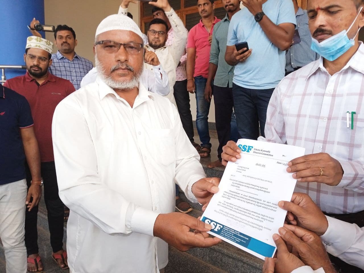 ಭಟ್ಕಳ: ಹಿಜಾಬ್ ಸಂಬಂಧಿಸಿದಂತೆ ರಾಜ್ಯ ಹೈಕೋರ್ಟಿನ ಮಧ್ಯಂತರ ಆದೇಶವನ್ನು ತಪ್ಪಾಗಿ ಅರ್ಥೈಸಿ ಅದನ್ನು ಬಲವಂತವಾಗಿ ಅನುಷ್ಟಾನಗೊಳಿಸುತ್ತಿರುವದನ್ನು ವಿರೋಧಿಸಿದ ಸುನ್ನಿ ಸ್ಟೂಡೆಂಟ್ಸ್ ಫೆಡರೇಷನ್ (ಎಸ್ಸೆಸೆಫ್) ಸಂಘಟನೆ ಭಟ್ಕಳದ ತಹಸಿಲ್ದಾರರ ಮೂಲಕ ರಾಜ್ಯಪಾಲರಿಗೆ ಮನವಿಯನ್ನು ಅರ್ಪಿಸಿತು.