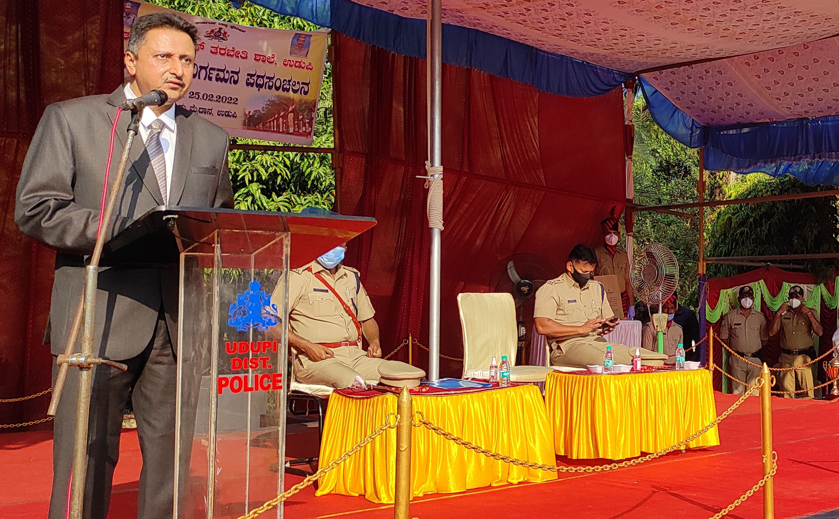 ಶುಕ್ರವಾರ ನಗರದ ಪೊಲೀಸ್ ಕಲಾಯತ್ ಚಂದು ಮೈದಾನದಲ್ಲಿ, ಉಡುಪಿ ಪೊಲೀಸ್ ತರಬೇತಿ ಶಾಲೆಯ 13ನೇ ತಂಡದ ಸಶಸ್ತ್ರ ಪೊಲೀಸ್ ಕಾನ್ಸ್ಟೇಬಲ್ ಪ್ರಶಿಕ್ಷಣಾರ್ಥಿಗಳ ನಿರ್ಗಮನ ಪಥ ಸಂಚಲನದಲ್ಲಿ ಗೌರವ ರಕ್ಷೆ ಸ್ವೀಕರಿಸಿ ಅವರು ಮಾತನಾಡುತಿದ್ದರು.