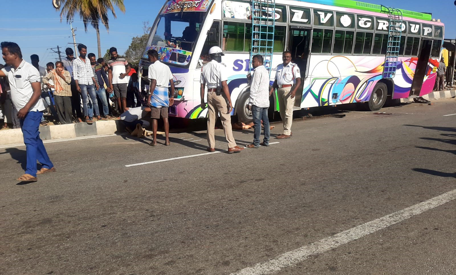 ಅಪಘಾತದ ಬೆನ್ನಲ್ಲೇ ಬಸ್ ಚಾಲಕ ಬಸ್ ಬಿಟ್ಟು ಪರಾರಿಯಾಗಿದ್ದಾನೆ.