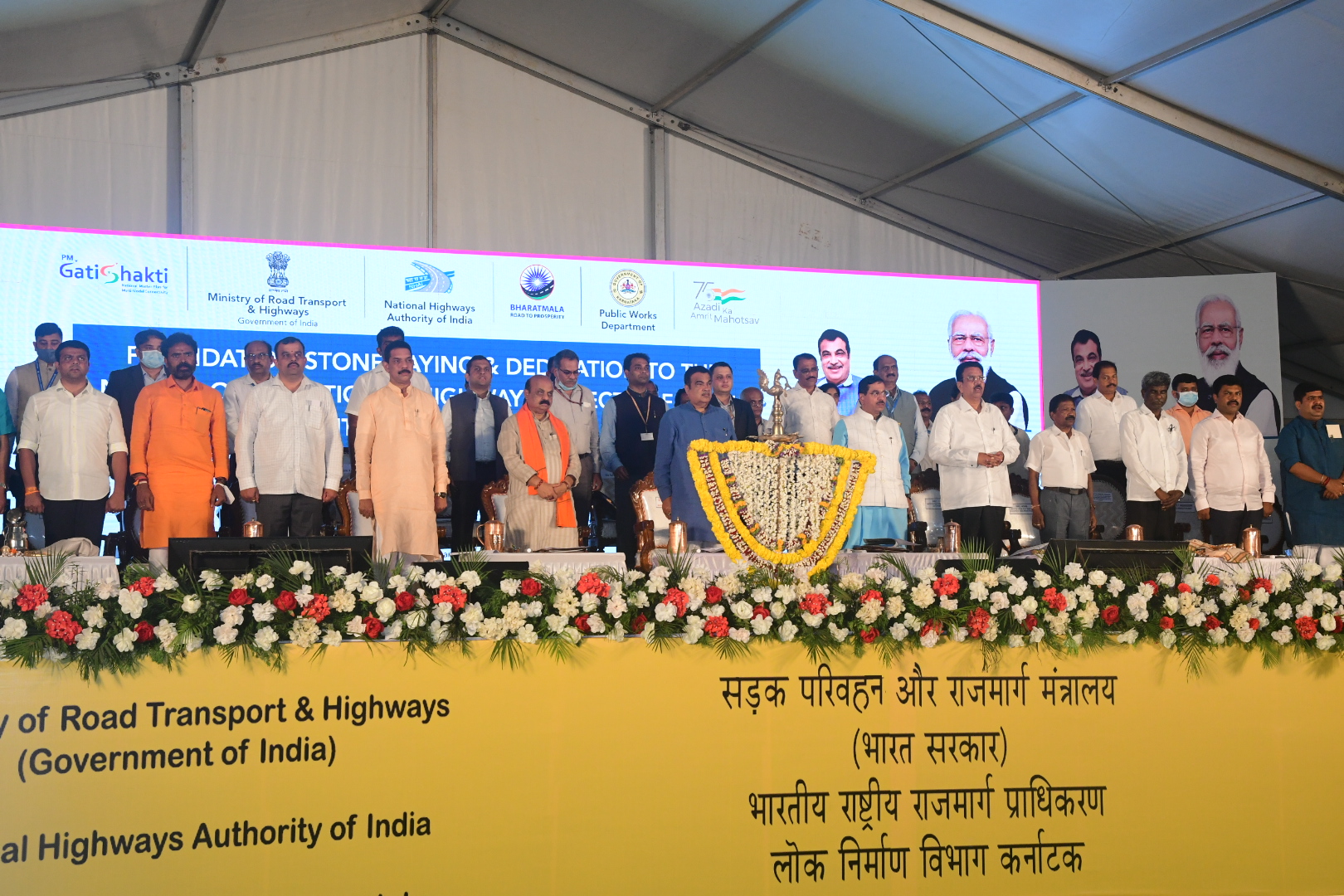 2802.48 ಕೋಟಿ ರೂ.ಗಳ ವೆಚ್ಚದಲ್ಲಿ ಒಟ್ಟು 7 ರಸ್ತೆಗಳ 141.155 ಕಿ.ಮೀ. ಉದ್ದದ ದ್ವಿಪಥ ಹಾಗೂ ಚತುಷ್ಪತ ರಸ್ತೆ ನಿರ್ಮಾಣ ಕಾಮಗಾರಿಗಳ ಶಂಕು ಸ್ಥಾಪನೆ, 174.94 ಕೋಟಿ ರೂ. ವೆಚ್ಚದಲ್ಲಿ 9 ಸೇತುವೆಗಳ ಸೇತುವೆ ನಿರ್ಮಾಣ ಕಾಮಗಾರಿ ಶಂಕು ಸ್ಥಾಪನೆ ನೆರವೇರಿಸಲಾಯಿತು.