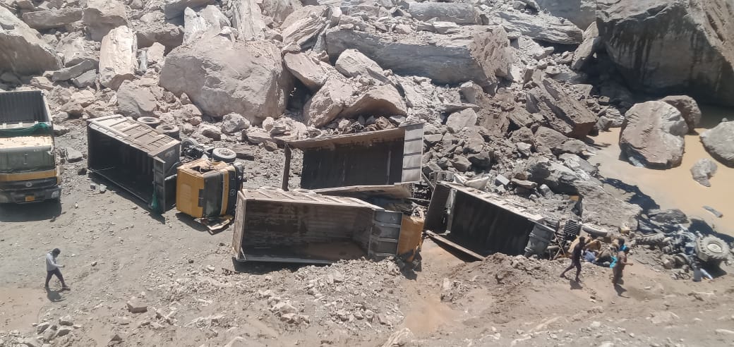 ಇಂದು ಬೆಳಗ್ಗೆ 11.30ರ ಸುಮಾರಿಗೆ ಘಟನೆ ಸಂಭವಿಸಿದೆ. ಆರು ಟಿಪ್ಪರ್ ಗಳಿಗೆ ಹಾನಿಯಾಗಿದೆ. ಗಣಿ ಕಾರ್ಮಿಕರು ಹಾಗೂ ಟಿಪ್ಪರ್ ಚಾಲಕರು ಮಣ್ಣಿನಡಿಯಲ್ಲಿ ಸಿಲುಕಿದ್ದಾರೆ ಎಂದು ಸ್ಥಳೀಯರು ತಿಳಿಸಿದ್ದಾರೆ.