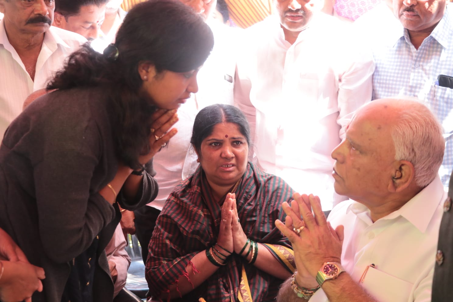 ಹತ್ಯೆಯಾದ ಹರ್ಷ ಮನೆಗೆ ಯಡಿಯೂರಪ್ಪ ಭೇಟಿ: 25 ಲಕ್ಷ ರೂ. ಪರಿಹಾರ ವಿತರಣೆ