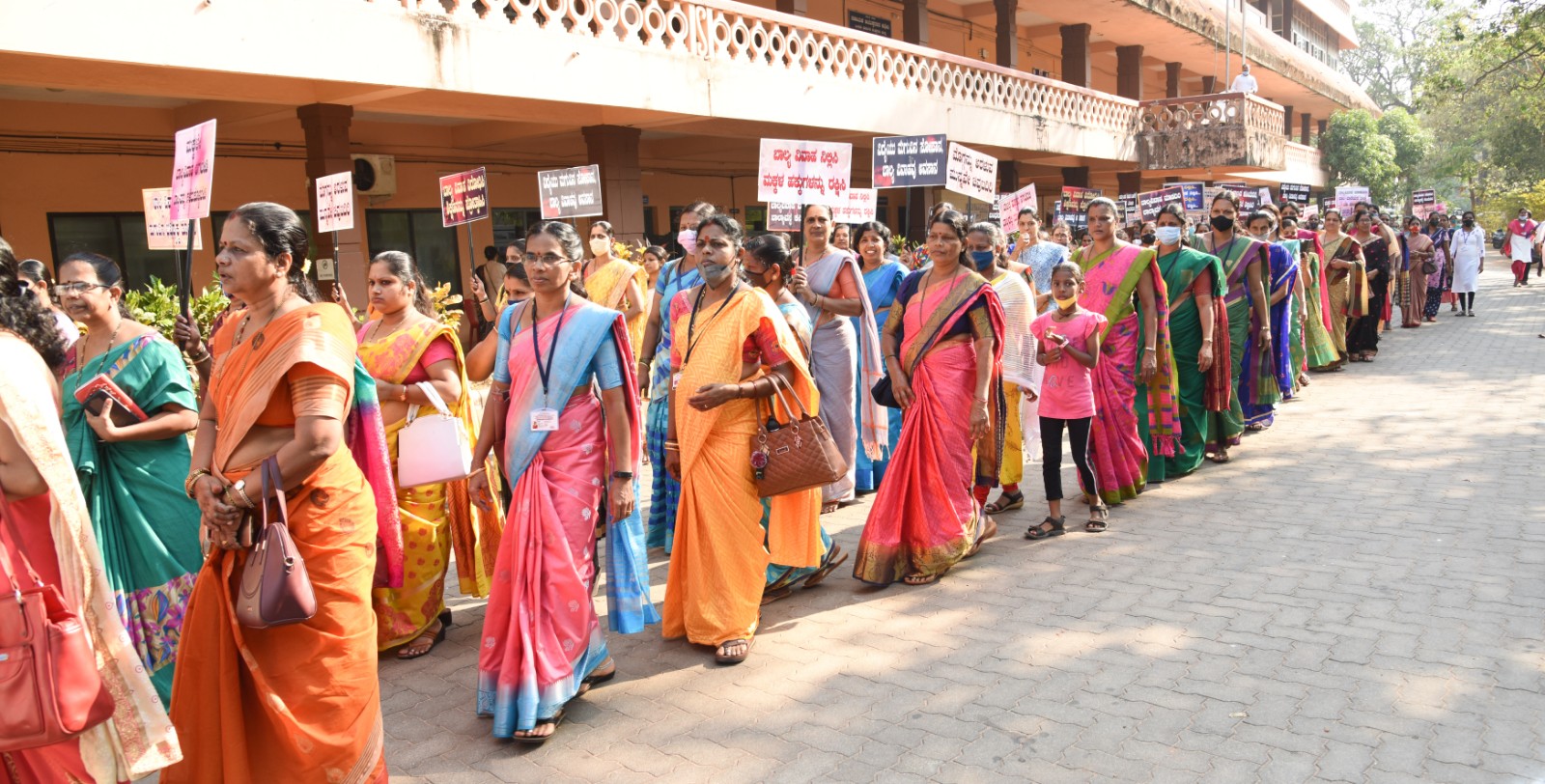 ಮಹಿಳೆಯರು ಹಾಗೂ ವಿದ್ಯಾರ್ಥಿಗಳು ಜಿಲ್ಲಾಧಿಕಾರಿಗಳ ಕಚೇರಿಯಿಂದ ಜಾಥಾದ ಮೂಲಕ ತೆರಳಿ ಸಾರ್ವಜನಿಕರಲ್ಲಿ ಜಾಗೃತಿ ಮೂಡಿಸಿದರು.