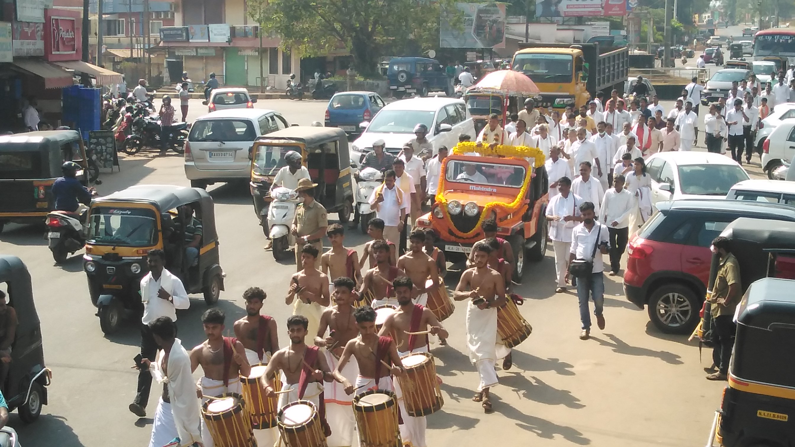 ಕಾರ್ಯಕ್ರಮದ ಮೊದಲು ಪದ್ಮಶ್ರೀ ಮಹಾಲಿಂಗ ನಾಯ್ಕ ಅವರನ್ನು ದರ್ಬೆ ವೃತ್ತದ ಬಳಿಯಿಂದ ತೆರದ ವಾಹನದಲ್ಲಿ ನಗರದಲ್ಲಿ ಮೆರವಣಿಗೆ ನಡೆಸಿ ಸಭಾಭವನ ಸ್ಥಳಕ್ಕೆ ಕರೆತರಲಾಯಿತು. ನಗರಸಭೆ ಅಧ್ಯಕ್ಷ ಜೀವಂಧರ್ ಜೈನ್ ತೆಂಗಿನಕಾಯಿ ಒಡೆಯುವ ಮೂಲಕ ಮೆರವಣಿಗೆಗೆ ಚಾಲನೆ ನೀಡಿದರು.