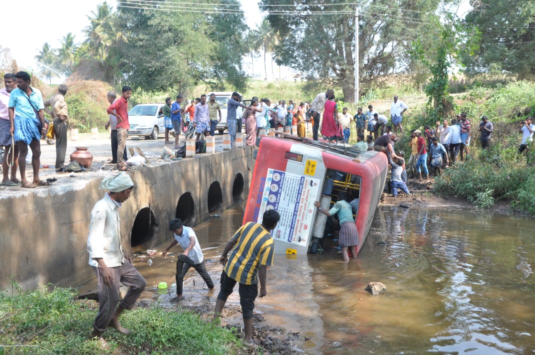 ಸೋಮವಾರ ಮಧ್ಯಾಹ್ನ ಕೆಎಸ್ಸಾರ್ಟಿಸಿ ಬಸ್ ಕೊಳ್ಳೇಗಾಲದಿಂದ ಪಿಜಿಪಾಳ್ಯ ಗ್ರಾಮಕ್ಕೆ ತೆರಳುವ ವೇಳೆ ಮಳೆ ದತ್ತವಾಡದ ಸಮೀಪ ಆಯ ತಪ್ಪಿ ಉರುಳಿ ಬಿದ್ದಿದೆ ಎಂದು ಹೇಳಲಾಗಿದೆ.