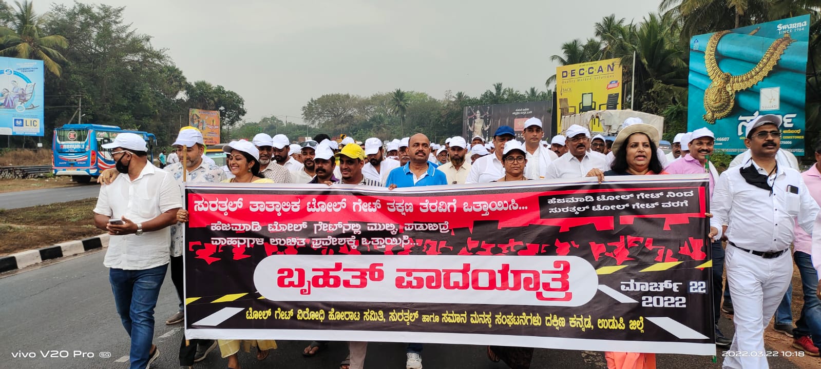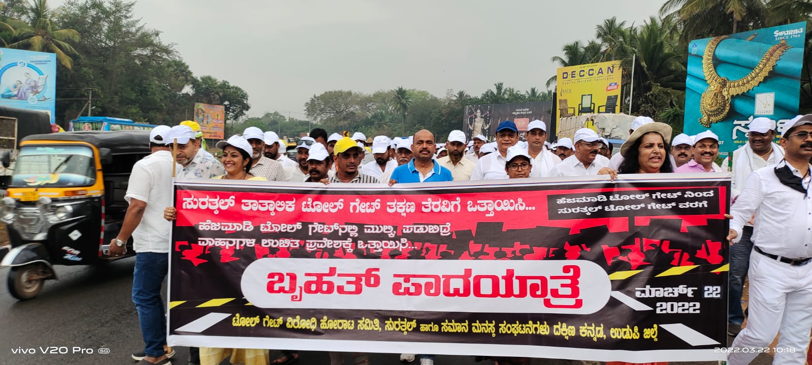 ಟೋಲ್ ಗೇಟ್ ತೆರವಿಗೆ ಒತ್ತಾಯ; ಹೆಜಮಾಡಿಯಿಂದ ಸುರತ್ಕಲ್ ಟೋಲ್ ಗೇಟ್ ಪಾದಯಾತ್ರೆಗೆ ಚಾಲನೆ