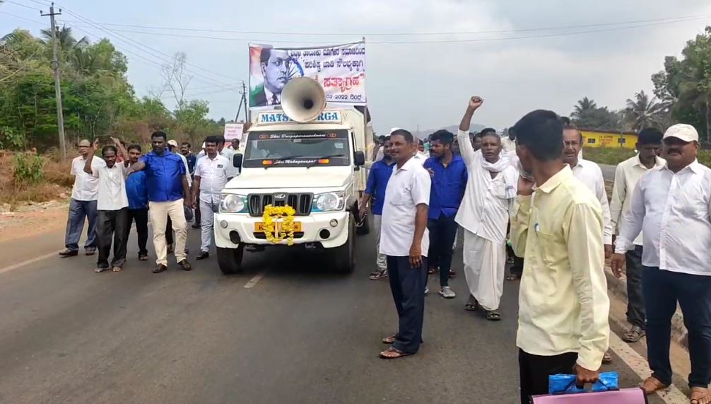 ವೆಂಕಟಾಪುರದಿಂದ ಪ್ರತಿಭಟನಾ ರ್ಯಾಲಿ ಆರಂಭಿಸಲಾಗಿದ್ದು ಮಿನಿ ವಿಧಾನಸೌಧದ ಬಳಿ ಸಮಾವೇಶಗೊಂಡು ಧರಣಿ ಸತ್ಯಾಗ್ರಹ ಆರಂಭಿಸಿದ್ದಾರೆ.