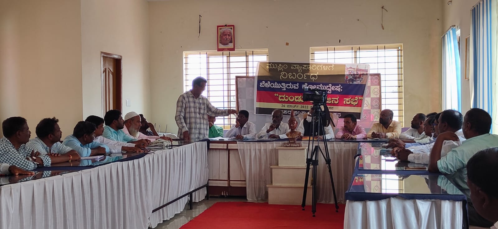 ಹಾಸನ: ಮಾ. 26. ಇತ್ತೀಚೆಗೆ ಹಿಂದೂ ದೇವಾಲಯಗಳ ಅಕ್ಕ-ಪಕ್ಕದಲ್ಲಿ ಮುಸ್ಲಿಮರು ಅಂಗಡಿ ಹಾಕಿ ವ್ಯಾಪಾರ ಮಾಡುವುದನ್ನು ನಿರ್ಬಂಧಿಸಿರುವುದರ ಬಗ್ಗೆ ಹಾಸನ ನಗರದ ಮಾನವ ಬಂಧುತ್ವ ವೇದಿಕೆ ಕಚೇರಿಯಲ್ಲಿ ಜನಪರ ಸಂಘಟನೆ ವತಿಯಿಂದ ದುಂಡುಮೇಜಿನ ಸಭೆ ನಡೆಯಿತು.