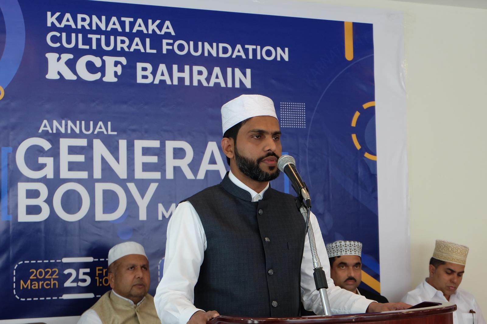 2019-2022 ನೇ ಸಾಲಿನ ವಾರ್ಷಿಕ ವರದಿಯನ್ನು ಪ್ರಧಾನ ಕಾರ್ಯದರ್ಶಿ ಹಾರಿಸ್ ಸಂಪ್ಯ ವಾಚಿಸಿದರು. ವಾರ್ಷಿಕ ಲೆಕ್ಕ ಪತ್ರವನ್ನು ಕೋಶಾಧಿಕಾರಿ ಸೂಫೀ ಪೈಂಬಚ್ಚಾಲ್ ರವರು ಮಂಡಿಸಿದರು. ಅಧ್ಯಕ್ಷೀಯ ಭಾಷಣದಲ್ಲಿ ಕೆ ಸಿ ಎಫ್ ರಾಷ್ಟ್ರೀಯ ಸಮಿತಿಯ ಅಧ್ಯಕ್ಷರಾದ ವಿಟ್ಟಲ್ ಜಮಾಲುದ್ದೀನ್ ರವರು ಕೆ.ಸಿ.ಎಫ್ ಕಳೆದ ಎಂಟು ವರ್ಷಗಳ ಕಾಲ ಮಾಡಿರುವ ಸಾಧನೆಗಳನ್ನು ವಿವರಿಸುತ್ತಾ , ಕೆಸಿಎಫ್ ಬಹರೈನಿನ ಉನ್ನತಿಗೆ ಸಹಕರಿಸಿದ ಎಲ್ಲರಿಗೂ ಕೃತಜ್ಞತೆಗಳನ್ನು ಸಲ್ಲಿಸಿದರು.