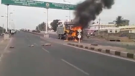 ಟಿಪ್ಪರ್ ಗೆ ಬೆಂಕಿ ಹಚ್ಚಿ ಸಾರ್ವಜನಿಕರಿಂದ ಆಕ್ರೋಶ