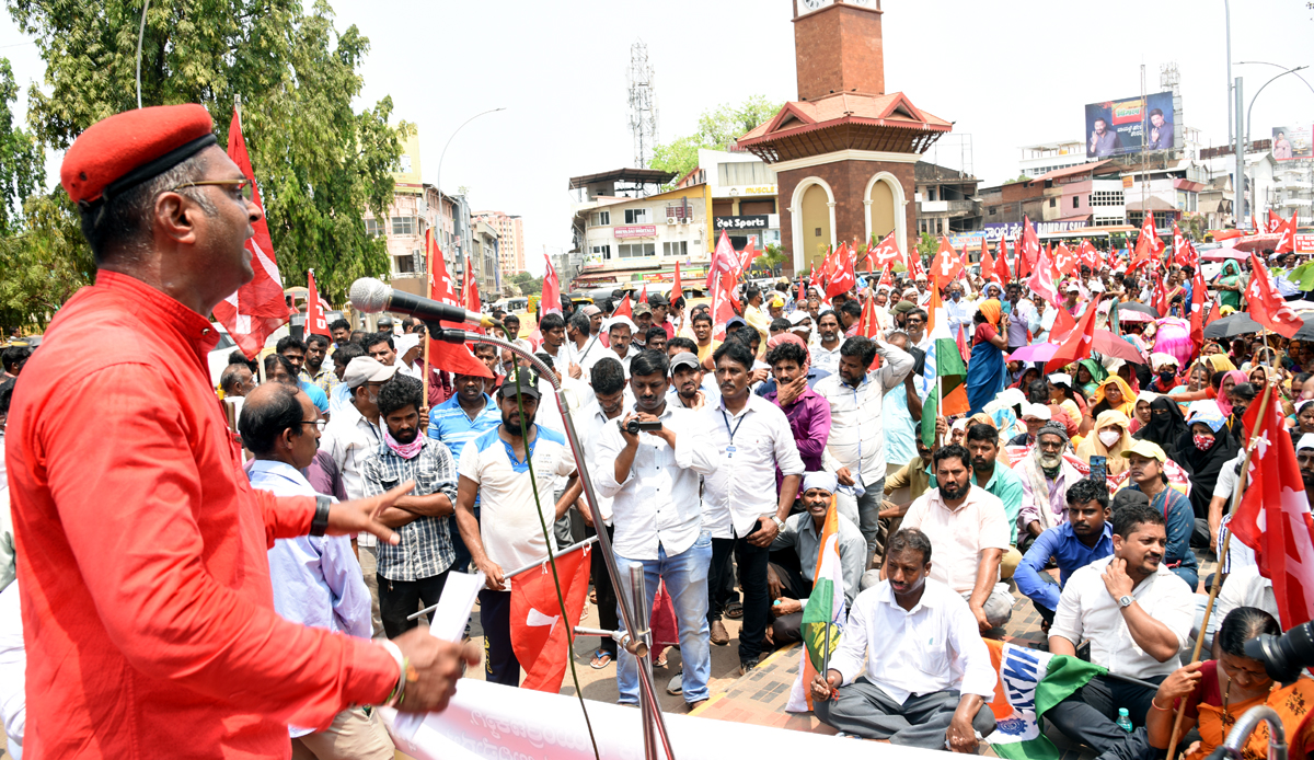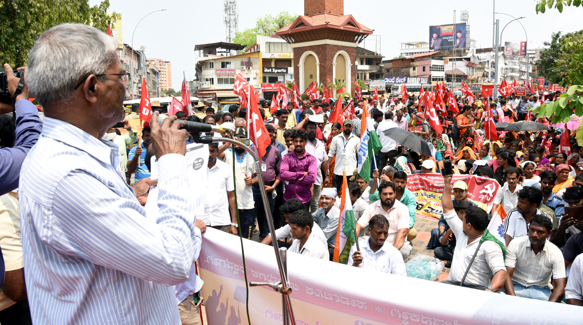 ಕಾರ್ಮಿಕರ ಸಂಘಟಿತ ಹೋರಾಟದ ಫಲವಾಗಿ ರೂಪುಗೊಂಡಿದ್ದ ಕಾರ್ಮಿಕ ಕಾನೂನುಗಳನ್ನು ತಿದ್ದುಪಡಿ ಮಾಡಿ, ಕಾರ್ಪೊರೇಟ್ ಪರವಾದ 4 ಸಂಹಿತೆಗಳನ್ನು ಮಾಡುವ ಮೂಲಕ ಮತ್ತೆ ಕಾರ್ಮಿಕರನ್ನು ಜೀತದಾಳುಗಳನ್ನಾಗಿ ದುಡಿಸುವ ಹುನ್ನಾರ ಅಡಗಿದೆ. ಬೆಲೆಯೇರಿಕೆಯಿಂದ ಕಂಗೆಟ್ಟ ಕಾರ್ಮಿಕರು ಸಾಮಾಜಿಕ ಭದ್ರತೆಯಿಲ್ಲದೆ, ಕನಿಷ್ಠ ಕೂಲಿಯಿಲ್ಲದೆ ತೀರಾ ಶೋಚನೀಯ ಬದುಕು ಸಾಗಿಸುವಂತಾಗಿದೆ. ಅಂದು ದೇಶದ ಸ್ವಾತಂತ್ರ್ಯಕ್ಕಾಗಿ ಹೋರಾಡಿ, ತ್ಯಾಗ ಬಲಿದಾನದ ಪರಂಪರೆ ಹೊಂದಿದ ಕಾರ್ಮಿಕ ವರ್ಗ ಇಂದು ಮತ್ತೆ ದೇಶದ ರಕ್ಷಣೆಗಾಗಿ ಸಂಘಟಿತ ಹೋರಾಟ ನಡೆಸುವ ಮೂಲಕ ಜನತೆಯ ಬದುಕನ್ನು ಉಳಿಸಬೇಕಾಗಿದೆ ಎಂದರು.