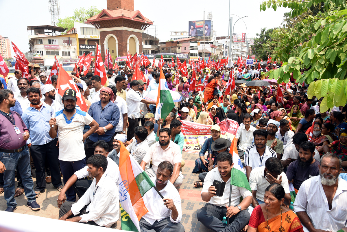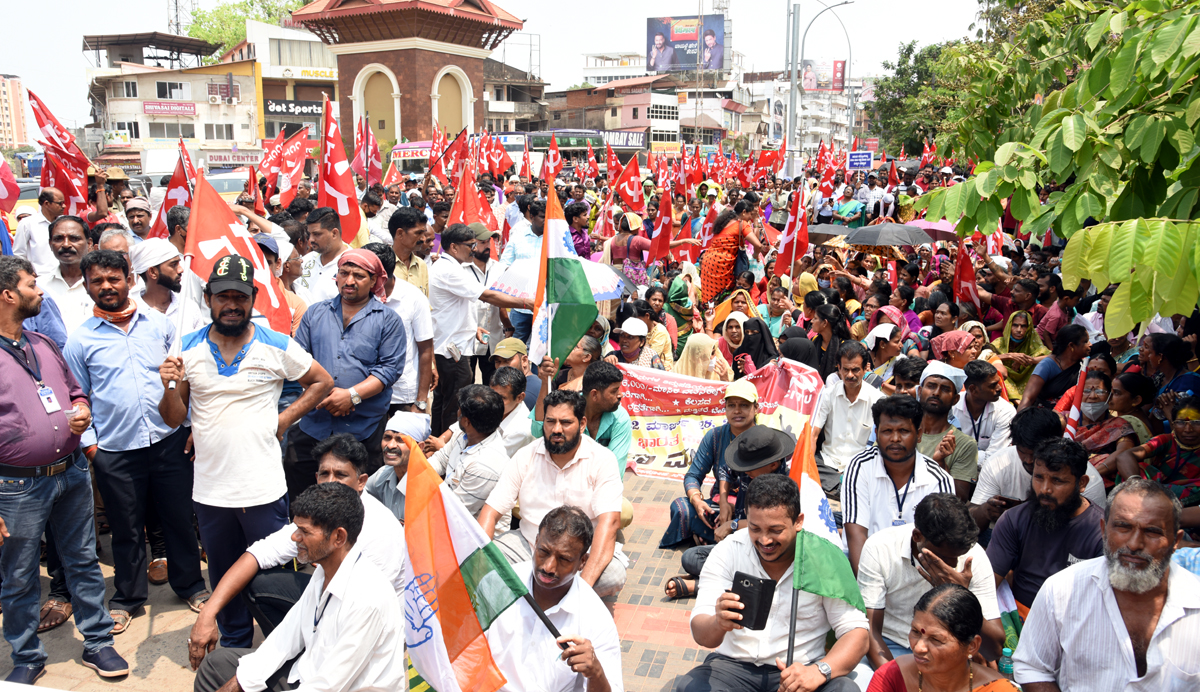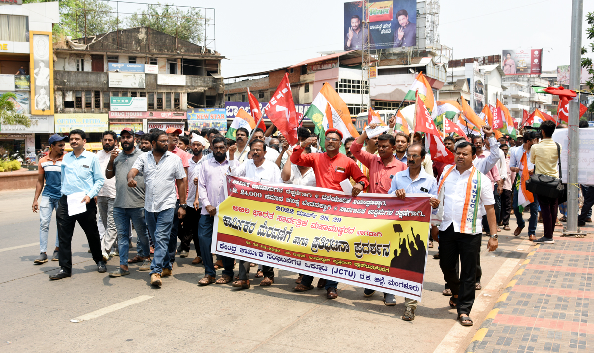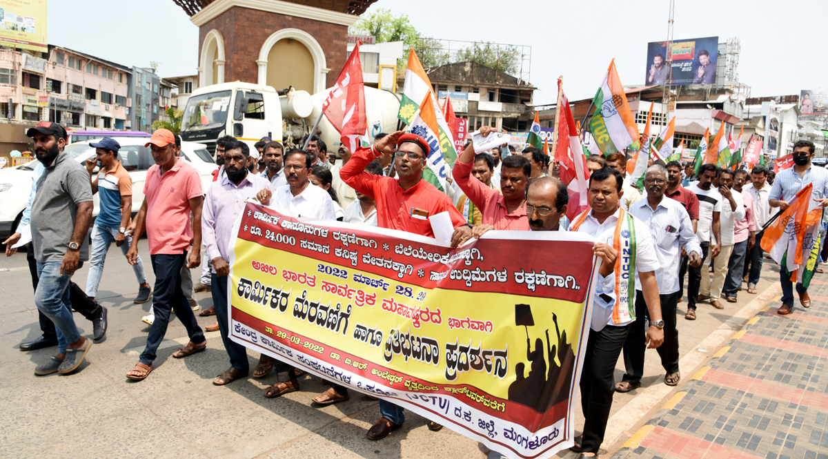 ಅಖಿಲ ಭಾರತ ಮುಷ್ಕರ: ಮಂಗಳೂರಿನಲ್ಲಿ ಕಾರ್ಮಿಕ ಸಂಘಟನೆಗಳಿಂದ ಪ್ರತಿಭಟನಾ ಪ್ರದರ್ಶನ