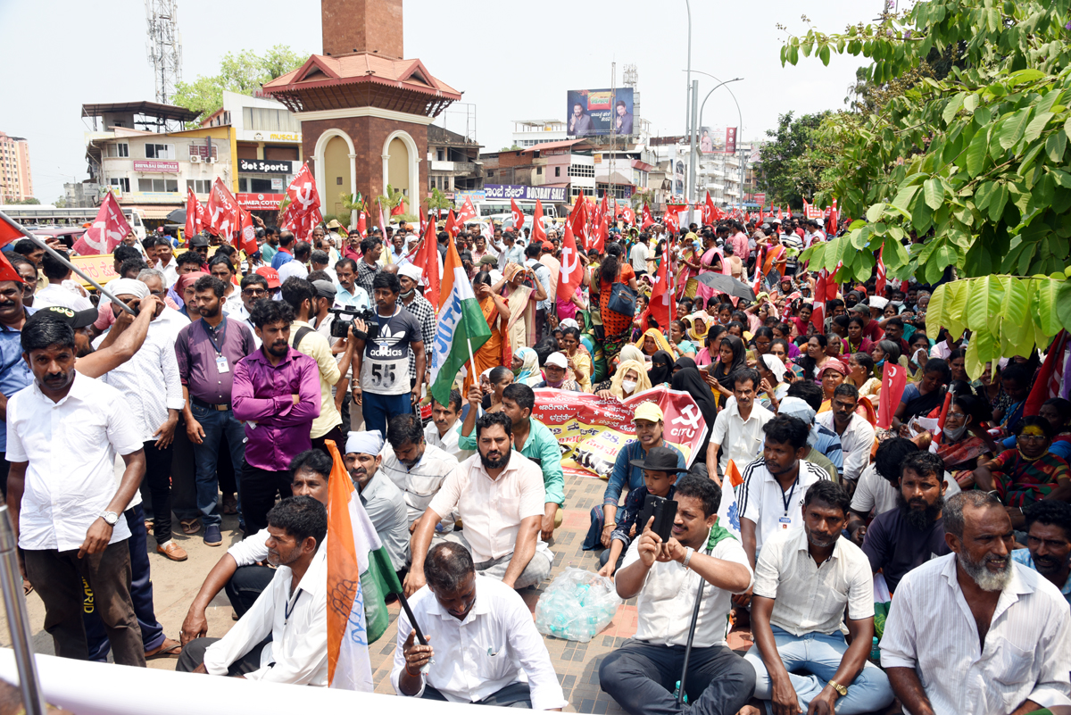 ಕ್ಲಾಕ್ ಟವರ್ ಬಳಿ ನಡೆದ ಪ್ರತಿಭಟನಾ ಸಮಾವೇಶನ್ನುದ್ದೇಶಿಸಿ ಮಾತನಾಡಿದ ಸಿಐಟಿಯು ದ.ಕ. ಜಿಲ್ಲಾ ಪ್ರಧಾನ ಕಾರ್ಯದರ್ಶಿ ಸುನೀಲ್ ಕುಮಾರ್ ಬಜಾಲ್, ಸುಳ್ಳು ಆಶ್ವಾಸನೆಗಳನ್ನು ನೀಡಿ ಅಧಿಕಾರಕ್ಕೇರಿದ ಕೇಂದ್ರದ ನರೇಂದ್ರ ಮೋದಿ ಸರಕಾರವು ಕಾರ್ಪೊರೇಟ್ ಕಂಪೆನಿಗಳ ಹಿತ ಕಾಯುತ್ತಾ ದೇಶದ ಸಂಪತ್ತನ್ನೇ ಮಾರಲು ಹೊರಟಿದೆ ಎಂದು ಆಕ್ರೋಶ ವ್ಯಕ್ತಪಡಿಸಿದರು.