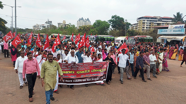 ಪ್ರತಿಭಟನೆಯಲ್ಲಿ ಎಐಟಿಯುಸಿಯ ಸಂಜೀವ ಶೇರೆಗಾರ್, ಸಿಐಟಿಯುನ ವಿಶ್ವನಾಥ್ ರೈ, ಬಾಲಕೃಷ್ಣ ಶೆಟ್ಟಿ, ಕವಿರಾಜ್, ವಿಮಾ ನೌಕರರ ಸಂಘದ ವಿಶ್ವನಾಥ್, ಬಿಸಿಯೂಟ ನೌಕರರ ಸಂಘದ ಸುನಾಂದ, ಮುಖಂಡರಾದ ಬಲ್ಕೀಸ್, ಮಹಾಬಲ ವಡೇರಹೋಬಳಿ, ವೆಂಕಟೇಶ್ ಕೋಣಿ, ಶೇಖರ ಬಂಗೇರ ಮೊದಲಾದವರು ಉಪಸ್ಥಿತರಿದ್ದರು.