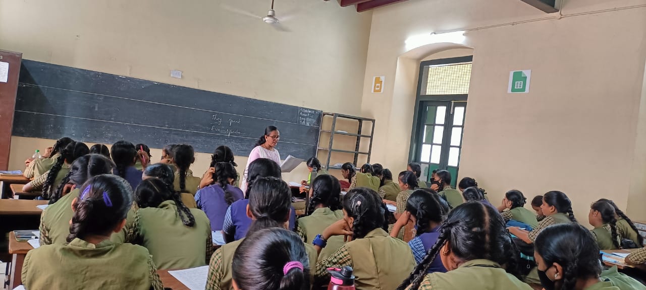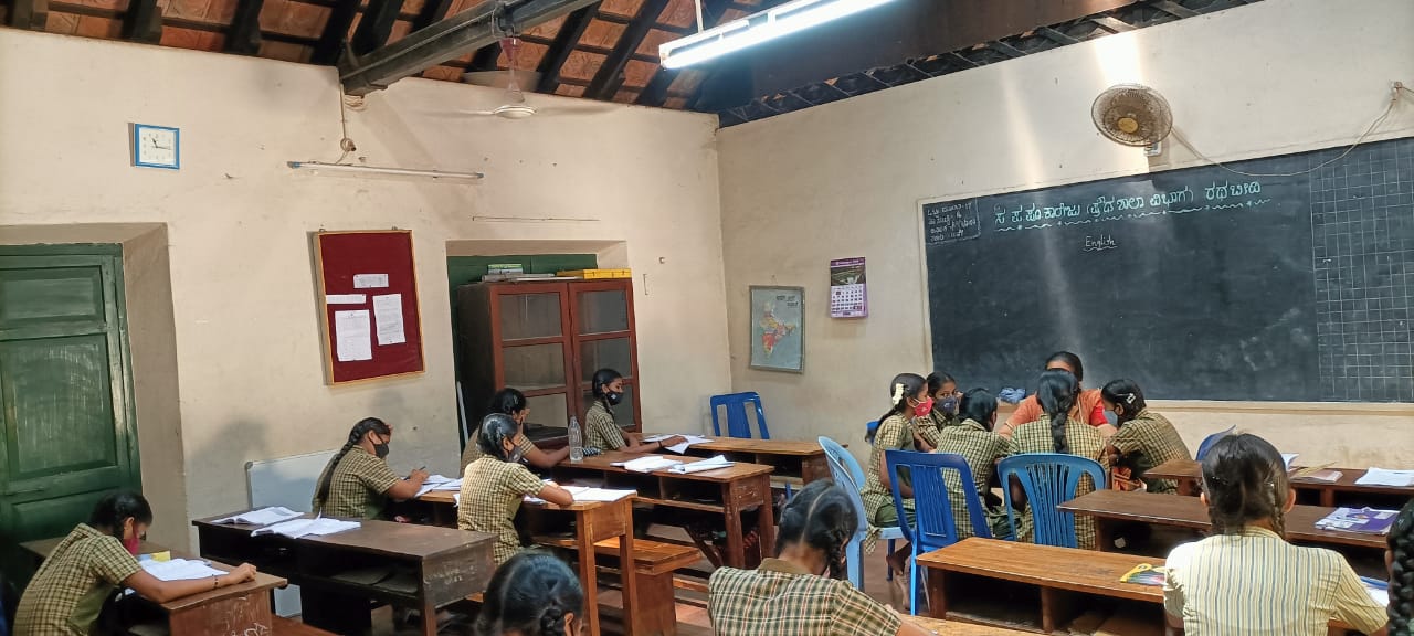 ಇಂದು ಬೆಳಗ್ಗೆ ನಗರದ ಹೃದಯ ಭಾಗದ ಬಲ್ಮಠ ಬಳಿಯ ಸರಕಾರಿ ಹೆಣ್ಣುಮಕ್ಕಳ ಸಂಯುಕ್ತ ಪದವಿ ಪೂರ್ವ ಕಾಲೇಜಿಗೆ ಭೇಟಿ ನೀಡಿದ ಸಂದರ್ಭ ಅಲ್ಲಿನ ಹೈಸ್ಕೂಲ್ ವಿಭಾಗದ 10ನೇ ತರಗತಿಯ ವಿದ್ಯಾರ್ಥಿಗಳಿಗೆ ಆಂಗ್ಲ ಭಾಷಾ ಶಿಕ್ಷಕಿ ಮರ್ಲಿನ್ ಮೇಬಲ್ ಮಸ್ಕರೇನಸ್ ಪಾಠ ಮಾಡುತ್ತಿದ್ದರು. ಇಲ್ಲಿ ಪ್ರಸಕ್ತ ಸಾಲಿನಲ್ಲಿ 10ನೇ ತರಗತಿಯಲ್ಲಿ 62 ಮಂದಿ ವಿದ್ಯಾರ್ಥಿಗಳಿದ್ದು, ಇವರಲ್ಲಿ 11 ವಿದ್ಯಾರ್ಥಿಗಳಿಗೆ (ಸಣ್ಣಪುಟ್ಟ ನ್ಯೂನತೆ ಇರುವ) ದ್ವಿತೀಯ ಮತ್ತು ತೃತೀಯ ಭಾಷಾ ಪರೀಕ್ಷೆಗಳಿಂದ ವಿನಾಯಿತಿ ಇದೆ. ಉಳಿದೆಲ್ಲಾ ಮಕ್ಕಳು ಇಂದು ಹಾಜರಾಗಿದ್ದು, ಶಿಕ್ಷಕಿಯಿಂದ ಕೊನೆ ಕ್ಷಣದ ಸಿದ್ಧತೆಯಲ್ಲಿ ತೊಡಗಿದ್ದರು.