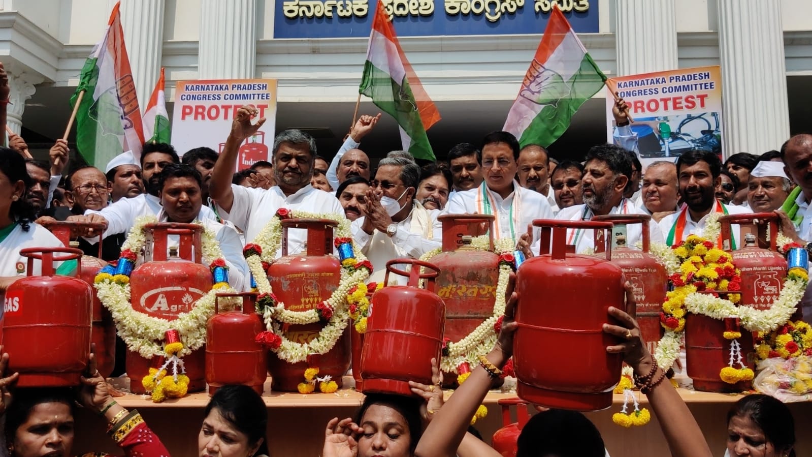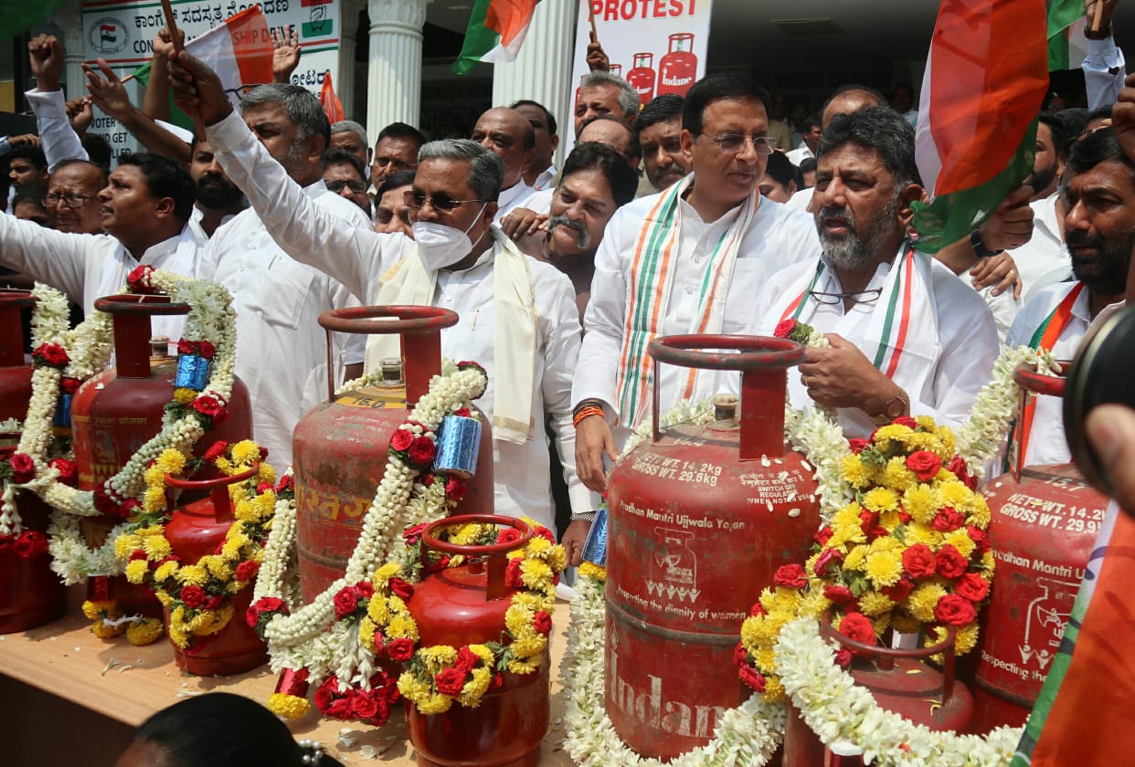 ಕೆಪಿಸಿಸಿ ಅಧ್ಯಕ್ಷ ಡಿ.ಕೆ.ಶಿವಕುಮಾರ್, ವಿಪಕ್ಷ ನಾಯಕ ಸಿದ್ದರಾಮಯ್ಯ ಅನಿಲ ಸಿಲಿಂಡರ್ ಗೆ ಘಂಟೆ ಬಾರಿಸಿ ಆರತಿ ಬೆಳಗಿ, ತಟ್ಟೆ ಬಡಿದು ಪ್ರತಿಭಟನೆ ಮಾಡಿದ್ದು ವಿಶೇಷವಾಗಿತ್ತು.
