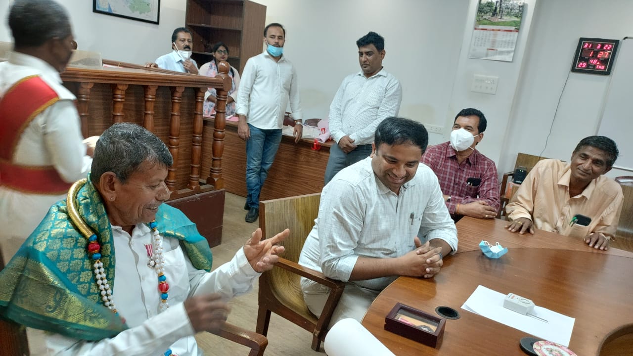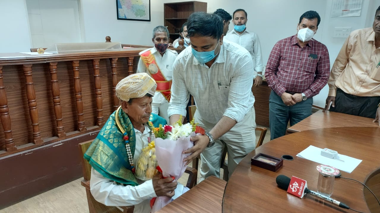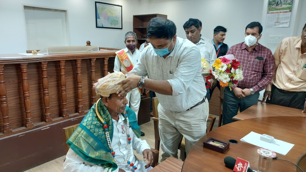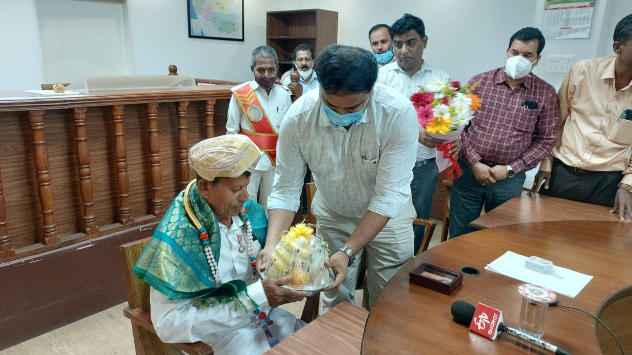 ಜಿಲ್ಲಾಧಿಕಾರಿ ಡಾ.ರಾಜೇಂದ್ರ ಅವರು ಪೇಟೆ ತೊಡಿಸಿ, ಹಾರ ಹಾಕಿ, ಸ್ಮರಣಿಕೆ ನೀಡಿ ಗೌರವಿಸಿದರು.