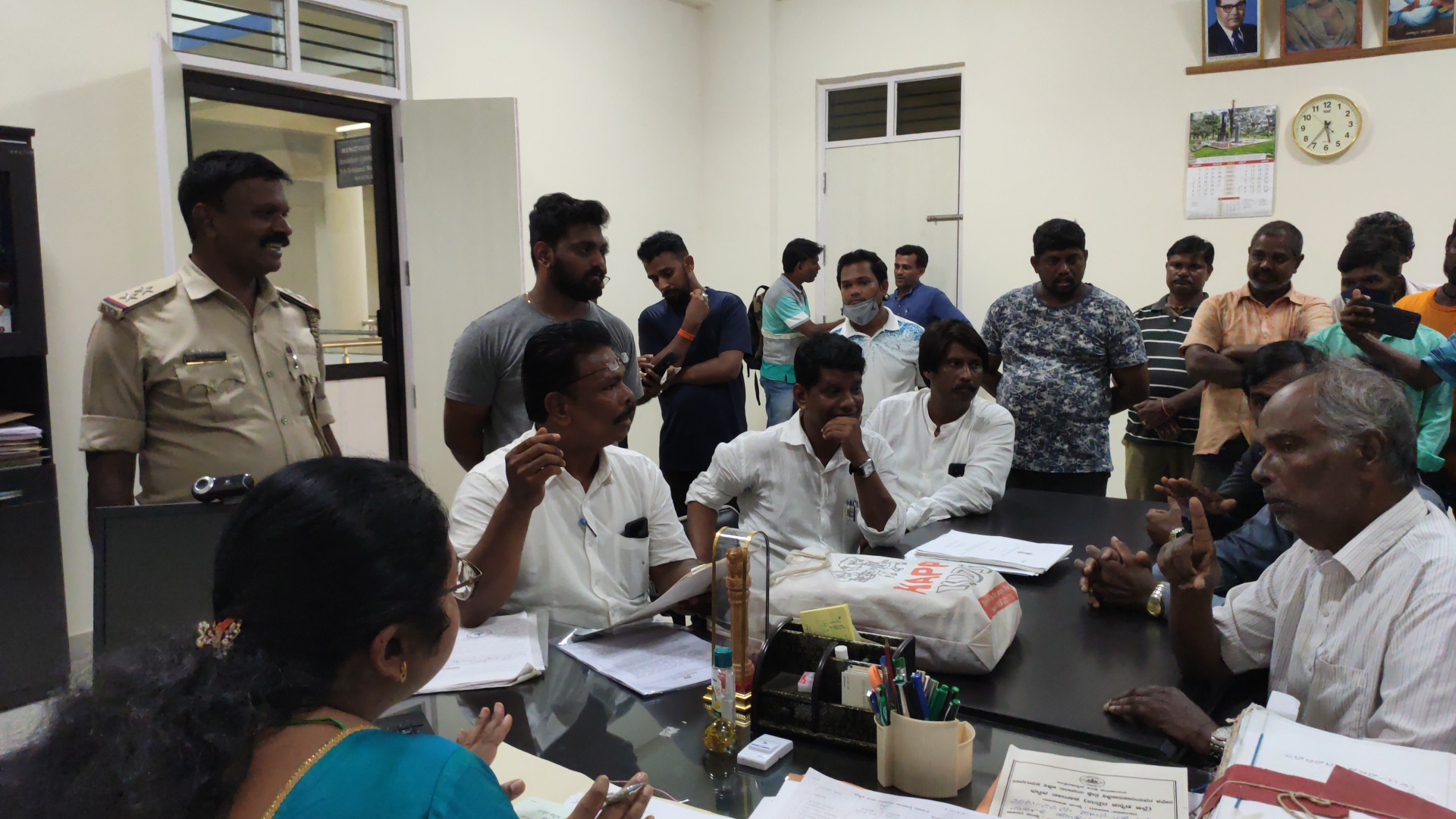 ಬಾಬಾಸಾಹೇಬ್ ಅಂಬೇಡ್ಕರ್ ಭಾವಚಿತ್ರದೊಂದಿಗೆ ಡೊಳ್ಳು ತಮಟೆಗಳನ್ನು ಬಾರಿಸುತ್ತ ಮೆರವಣೆಗೆ ಮೂಲಕ ಸಹಾಯಕ ಅಯುಕ್ತರ ಕಚೇರಿಗೆ ಆಗಮಿಸಿದ ನೈಜ ಪರಿಶಿಷ್ಠ ಜಾತಿಗೆ ಸೇರಿದ ನೂರಾರು ಮಂದಿ ಮಹಿಳೆಯರು, ಮಕ್ಕಳು ಭಟ್ಕಳ ಉಪವಿಭಾಗದ ಸಹಾಯಕ ಆಯುಕ್ತೆ ಮಮತಾ ದೇವಿಯವರಿಗೆ ಮನವಿ ಸಲ್ಲಿಸಿದರು.