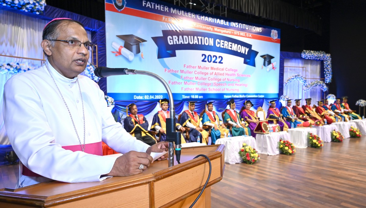 ಮಂಗಳೂರು ಕಥೋಲಿಕ್ ಕ್ರೈಸ್ತ ಧರ್ಮ ಪ್ರಾಂತ್ಯದ ಧರ್ಮಾಧ್ಯಕ್ಷ ಹಾಗೂ ಫಾದರ್ ಮುಲ್ಲಾರ್ ಸೇವಾ ಸಂಸ್ಥೆ ಗಳ ಅಧ್ಯಕ್ಷ ಅತೀ.ವಂ.ಡಾ.ಪೀಟರ್ ಪಾವ್ಲ್ ಸಲ್ದಾನ ಸಮಾರಂಭದ ಅಧ್ಯಕ್ಷತೆ ವಹಿಸಿ ಮಾತನಾಡುತ್ತಾ, ಮನುಷ್ಯನ ಎಲ್ಲಾ ಕಾಯಿಲೆ ಗಳನ್ನು ಔಷಧಿ ಗಳಿಂದ ಗುಣಪಡಿಸಲು ಸಾಧ್ಯವಿಲ್ಲ. ಮನುಷ್ಯನನ್ನು ಅರ್ಥ ಮಾಡಿಕೊಳ್ಳುವುದು, ರೋಗಿಯ ಬಗ್ಗೆ ಸಹಾನುಭೂತಿ, ಅನುಕಂಪ, ಭರವಸೆ, ಮಾನಸಿಕ ಸ್ಥೈರ್ಯ ನೀಡುವುದು ಮುಖ್ಯ ವಾಗುತ್ತದೆ. ರೋಗಿಯ ಜೊತೆ ಹೆಚ್ಚು ಮಾತನಾಡುವುದು ಆತನ ಮಾತುಗಳನ್ನು ಕೇಳುವ ಮೂಲಕ, ನಮ್ಮ ಮಾತು, ವರ್ತನೆ ಸೇರಿದಂತೆ ಆತನ ಬಗ್ಗೆ ತೋರುವ ಸಹಾನುಭೂತಿ ರೋಗಿ ಗುಣಮುಖನಾಗಲು ಸಾಧ್ಯ ಎಂದು ಯುವ ಪದವೀಧರರಿಗೆ ಕರೆ ನೀಡಿದರು.