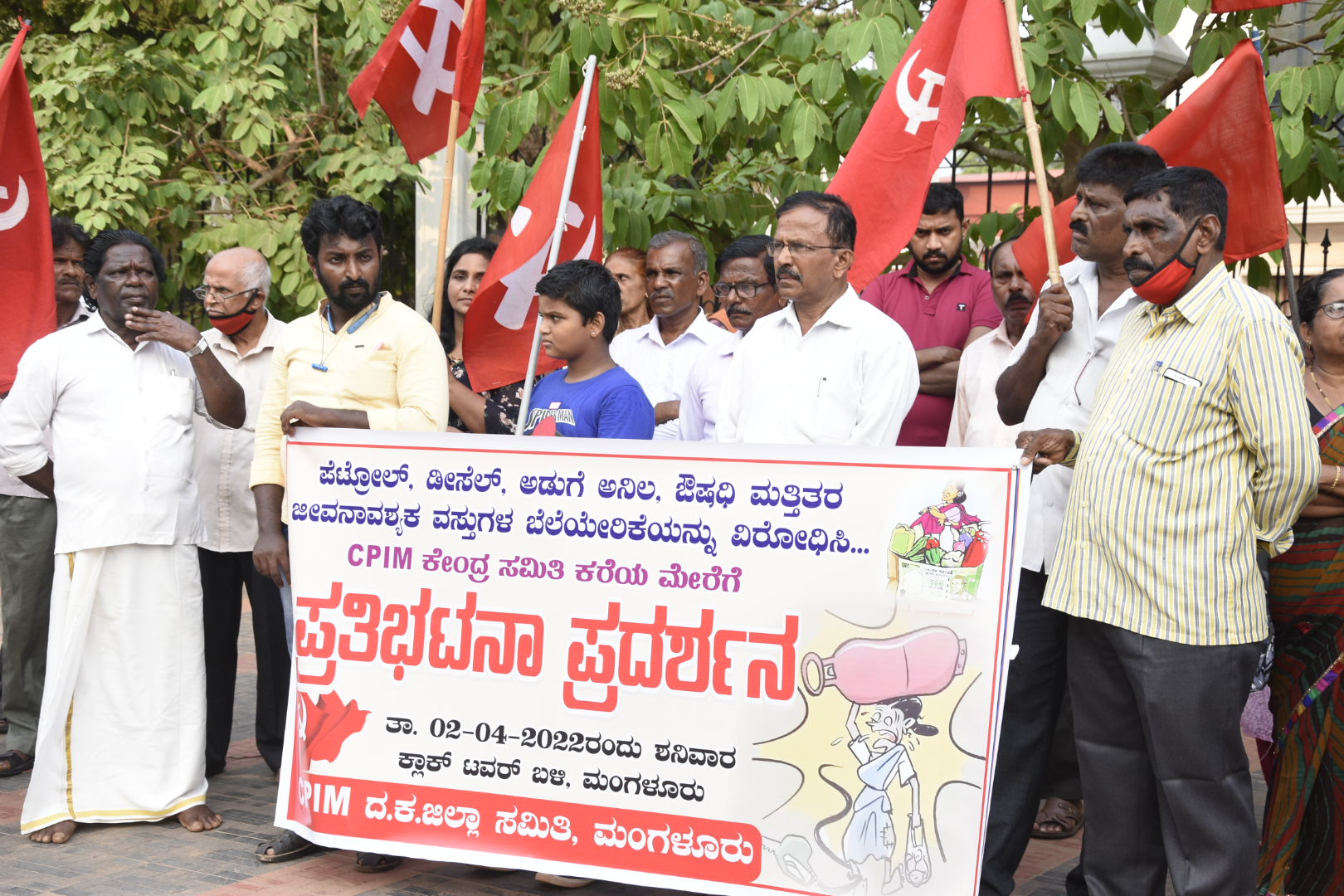 ಮಂಗಳೂರು : ಪೆಟ್ರೋಲ್, ಡೀಸೆಲ್, ಔಷಧ ಮತ್ತಿತರ ಜೀವನಾವಶ್ಯಕ ವಸ್ತುಗಳ ಬೆಲೆಯೇರಿಕೆಯನ್ನು ಖಂಡಿಸಿ ಸಿಪಿಎಂ ದ.ಕ. ಜಿಲ್ಲಾ ಸಮಿತಿಯು ಶನಿವಾರ ನಗರದ ಕ್ಲಾಕ್ ಟವರ್ ಬಳಿ ಪ್ರತಿಭಟನೆ ನಡೆಸಿತು.