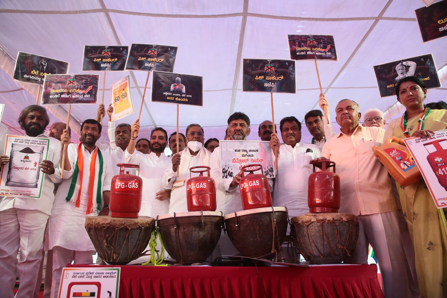 ಬೆಂಗಳೂರು, ಎ.11: ಬಿಜೆಪಿ ನೇತೃತ್ವದ ಕೇಂದ್ರ ಸರ್ಕಾರವು ಪದೇ ಪದೇ ಪಟ್ರೋಲ್, ಡಿಸೇಲ್, ಅಡುಗೆ ಅನಿಲ ಸಿಲಿಂಡರ್ ಬೆಲೆ ಏರಿಕೆ ಖಂಡಿಸಿ ಕಾಂಗ್ರೆಸ್ ಪ್ರತಿಭಟನೆ ನಡೆಸಿತು.