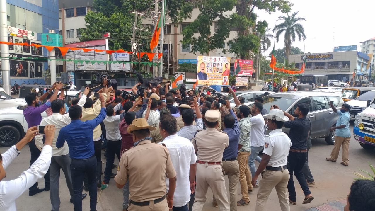 VIDEO-ಮಂಗಳೂರು:ಸಿಎಂ ಬೊಮ್ಮಾಯಿ ಸಭೆ ನಡೆಸುತ್ತಿದ್ದ ಖಾಸಗಿ ಹೋಟೆಲ್ ಗೆ ಕಾಂಗ್ರೆಸ್ ಕಾರ್ಯಕರ್ತರಿಂದ ಮುತ್ತಿಗೆಗೆ ಯತ್ನ