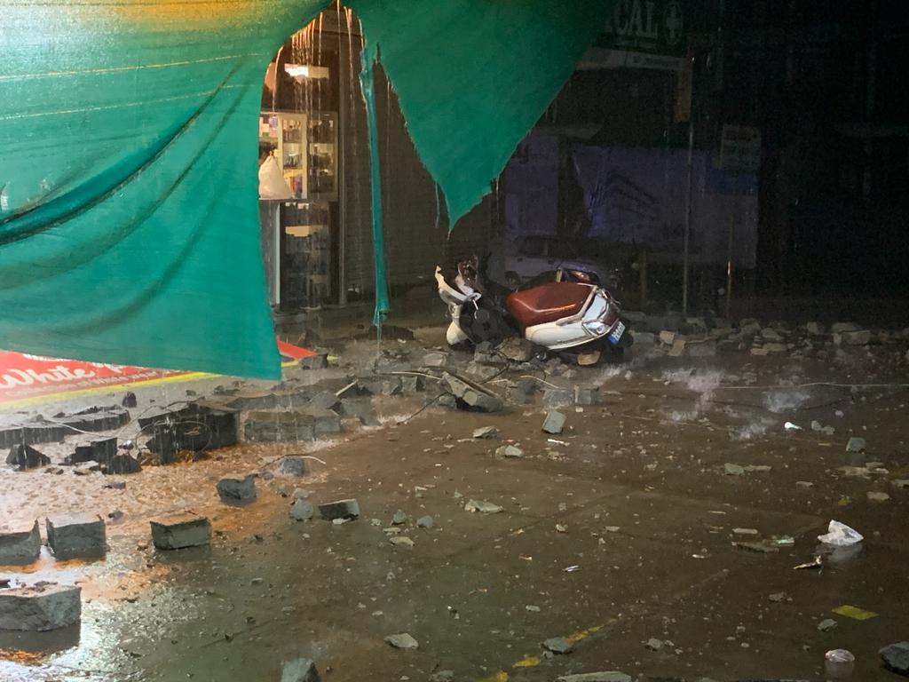 ಕಟ್ಟಡದಿಂದ ಕುಸಿದುಬಿದ್ದ ಕಲ್ಲುಗಳು