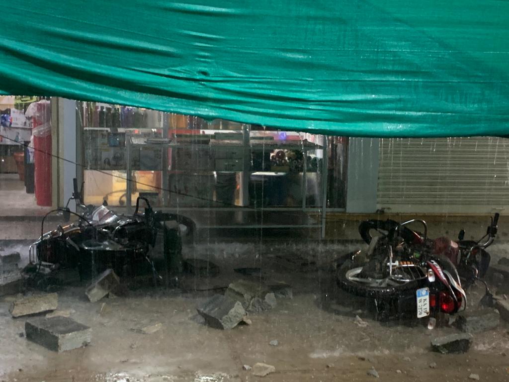 ವಿಟ್ಲದಲ್ಲಿ ಇಂದು ಸಂಜೆ ವೇಳೆ ಭಾರೀ ಬಿರುಗಾಳಿ ಸಹಿತ ಮಳೆ ಸುರಿದಿತ್ತು. ವಿ.ಎಚ್ ಕಾಂಪ್ಲೆಕ್ಸ್ ನಲ್ಲಿ ಅಂಗಡಿ ಮಳಿಗೆಗಳ ಮುಂಭಾಗದ ಪಾರ್ಕಿಂಗ್ ನಲ್ಲಿ ದ್ವಿಚಕ್ರ ವಾಹನಗಳನ್ನು ನಿಲ್ಲಿಸಲಾಗಿತ್ತು. ಪಾರ್ಕಿಂಗ್ ನ ಮೇಲ್ಭಾಗಕ್ಕೆ ಬೀಸಿಲು ಬಾರದಂತೆ ಹಳದಿ ಬಟ್ಟೆಯ ಚಪ್ಪರಕ್ಕೆ ಅಳವಡಿಸಲಾಗಿದ್ದ ಹೋಲೊ ಬ್ಲಾಕ್ ಕಲ್ಲುಗಳ ರಾಶಿ ಗಾಳಿಗೆ ಕುಸಿದಿದೆ. ಇದರಿಂದ ಸುಮಾರು ಐದು ದ್ವಿಚಕ್ರ ವಾಹನಗಳು ಹಾನಿಗೊಂಡಿದೆ. ಸ್ಥಳದಲ್ಲಿ ಜನರು ಯಾರೂ ಇಲ್ಲದ ಕಾರಣ ಭಾರೀ ಅನಾಹುತ ತಪ್ಪಿದೆ ಎಂದು ಸ್ಥಳೀಯರು ತಿಳಿಸಿದ್ದಾರೆ.