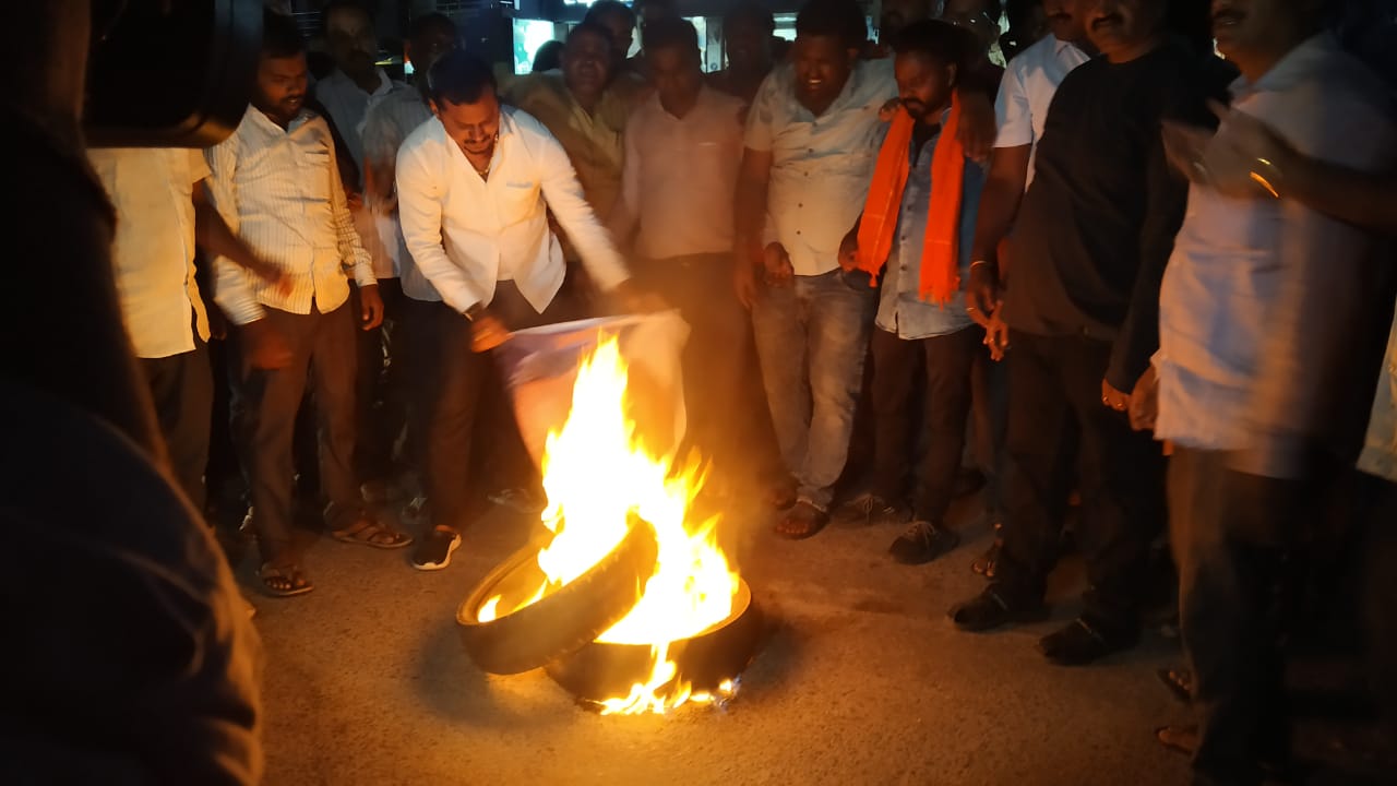 ನಗರದಲ್ಲಿ ಕೆಪಿಸಿಸಿ ಅಧ್ಯಕ್ಷ ಡಿ.ಕೆ ಶಿವಕುಮಾರ್, ವಿಧಾನಸಭೆ ವಿಪಕ್ಷ ನಾಯಕ ಸಿದ್ದರಾಮಯ್ಯ ಹಾಗೂ ಶಾಸಕಿ ಲಕ್ಷ್ಮೀ ಹೆಬ್ಬಾಳ್ಕರ್ ಅವರ ಭಾವಚಿತ್ರಕ್ಕೆ ಬೆಂಕಿ ಹಚ್ಚಿ ಆಕ್ರೋಶ ವ್ಯಕ್ತಪಡಿಸಿರುವ ಬಿಜೆಪಿ ಯುವ ಮೋರ್ಚಾ ಕಾರ್ಯಕರ್ತರು ಹಾಗೂ ಈಶ್ವರಪ್ಪ ಅವರ ಅಭಿಮಾನಿಗಳು ಈಶ್ವರಪ್ಪ ಅವರ ರಾಜೀನಾಮೆ ಹಿಂಪಡೆಯುವಂತೆ ಒತ್ತಾಯಿಸಿದರು.