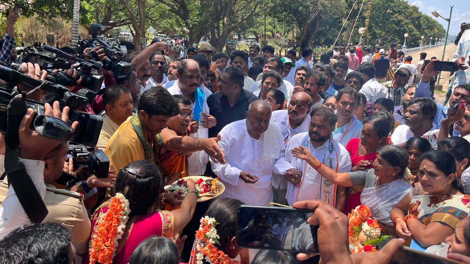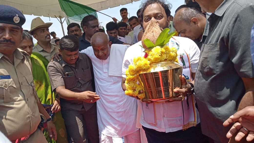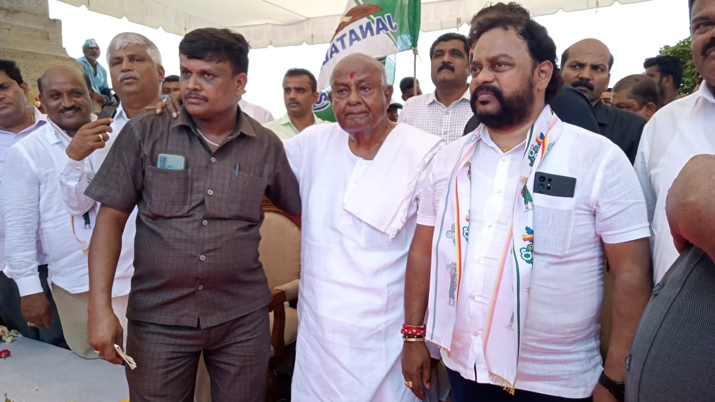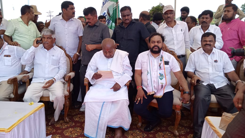ನಾನು ಒಬ್ಬ ರೈತನಾಗಿ ಈ ಕಾರ್ಯಕ್ರಮದಲ್ಲಿ ಭಾಗಿ ಯಾಗಿದ್ದೇನೆ ನನ್ನ ಕಾಲಿನಲ್ಲಿ ಶಕ್ತಿ ಇಲ್ಲ, ಆದರೆ ನನ್ನ ತಲೆಯಲ್ಲಿ ಶಕ್ತಿ ಇದೆ, ನಿಮ್ಮ ಜೊತೆ ನಾನು ಇದ್ದೇನೆ ಎಂದು ದೇವೇಗೌಡ ನುಡಿದರು.