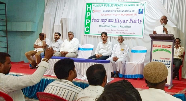 ಅವರು ಇಲ್ಲಿಯ ಸುಮನ್ ಫಂಕ್ಷನ್ ಹಾಲ್ ನಲ್ಲಿ ಹುಣಸೂರು ಪಬ್ಲಿಕ್ ಪೀಸ್ ಕಮಿಟಿ ಹಾಗೂ ಸಾಲಿಡಾರಿಟಿ ಯೂತ್ ಮೂವ್ಮೆಂಟ್ ಇವರ ಜಂಟಿ ಆಶ್ರಯದಲ್ಲಿ ಹಮ್ಮಿಕೊಂಡಂತಹ ಸೌಹಾರ್ದ ಇಫ್ತಾರ್ ಕೂಟ ಕಾರ್ಯಕ್ರಮವನ್ನುದ್ದೇಶಿಸಿ ಮಾತನಾಡುತ್ತಿದ್ದರು.