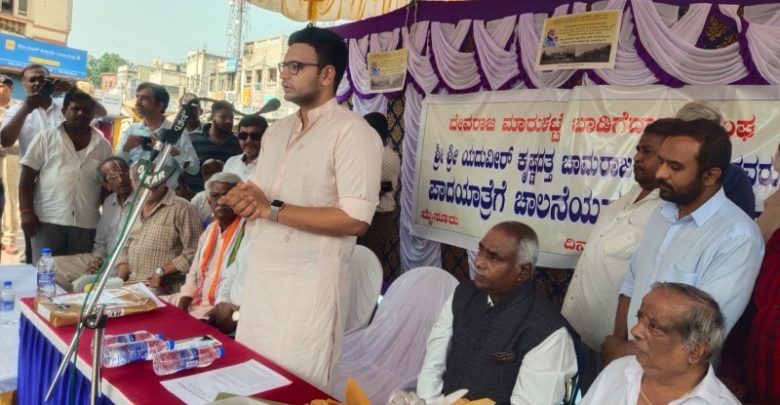 ಮೈಸೂರು ರಾಜವಂಶಸ್ಥ ಯದುವೀರ್ ಕೃಷ್ಣದತ್ತ ಚಾಮರಾಜ ಒಡೆಯರ್ ಅವರು ಪಾದಯಾತ್ರೆಗೆ ಚಾಲನೆ ನೀಡಿ ಮಾತನಾಡಿದರು.