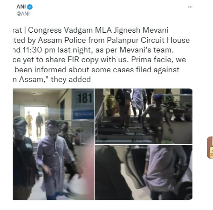 ಪಕ್ಷೇತರ ಅಭ್ಯರ್ಥಿಯಾಗಿ ಗೆದ್ದಿದ್ದ ಮೇವಾನಿ 2021, ಸೆಪ್ಟೆಂಬರ್ ನಲ್ಲಿ ಕಾಂಗ್ರೆಸ್ಗೆ ಬೆಂಬಲವನ್ನು ಘೋಷಿಸಿದ್ದರು. ಅವರನ್ನು ಪಾಲನಪುರದ ಸರ್ಕ್ಯೂಟ್ ಹೌಸ್ ನಿಂದ ಬಂಧಿಸಲಾಗಿದೆ.