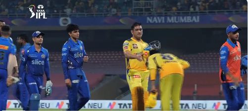 ಧೋನಿ ಅವರು ಚೆನ್ನೈಯನ್ನು ಗೆಲುವಿನ ದಡ ಸೇರಿಸಿ ಮೈದಾನದಿಂದ ಹೊರನಡೆಯುತ್ತಿದ್ದಂತೆ ನಾಯಕ ರವೀಂದ್ರ ಜಡೇಜ ನೇತೃತ್ವದಲ್ಲಿ ಚೆನ್ನೈ ಸಹ ಆಟಗಾರರು ಭಾರತೀಯ ದಂತಕತೆಯನ್ನು ಅಭಿನಂದಿಸಲು ತೆರಳಿದರು. ಕೈ ಕುಲುಕುವ ಮೊದಲು ಜಡೇಜ ಧೋನಿಗೆ ತಲೆಬಾಗಿ ನಮಿಸಿದರು.