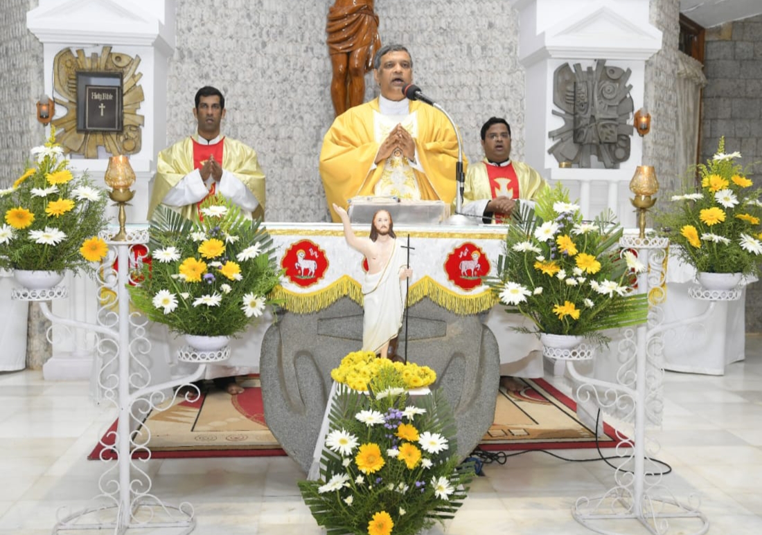 ಮಂಗಳೂರು : ಬಿಕರ್ನಕಟ್ಟೆ ಬಾಲಯೇಸುವಿನ ಪುಣ್ಯಕ್ಷೇತ್ರದಲ್ಲಿ ರವಿವಾರ ಸಂಜೆ 5.30ಕ್ಕೆ ದೈವಿಕರುಣೆಯ ಮಹೋತ್ಸವದ ಬಲಿಪೂಜೆಯನ್ನು ವಂ. ಧರ್ಮಗುರುಗಳಾದ ಒನಿಲ್ ಡಿಸೋಜಾ (ನಿರ್ದೇಶಕರು, ಸಂತ ಆಂತೊನಿ ಆಶ್ರಮ, ಜೆಪ್ಪು) ಅರ್ಪಿಸಿ ಪ್ರಭೋದನೆ ನೀಡಿದರು.