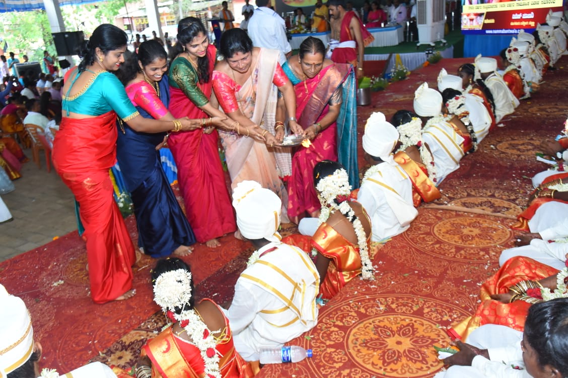 ಗುರುವಾಯನಕೆರೆ ಕೃಷ್ಣ ಭಟ್ ಅವರ ಪೌರೋಹಿತ್ಯದಲ್ಲಿ 11 ಗಂಟೆಯ ಶುಭ ಮುಹೂರ್ತದಲ್ಲಿ 20 ಜೋಡಿ ವಧು-ವರರು ಗೃಹಸ್ಥಾಶ್ರಮಕ್ಕೆ ಪಾದಾರ್ಪಣೆಗೈದರು.